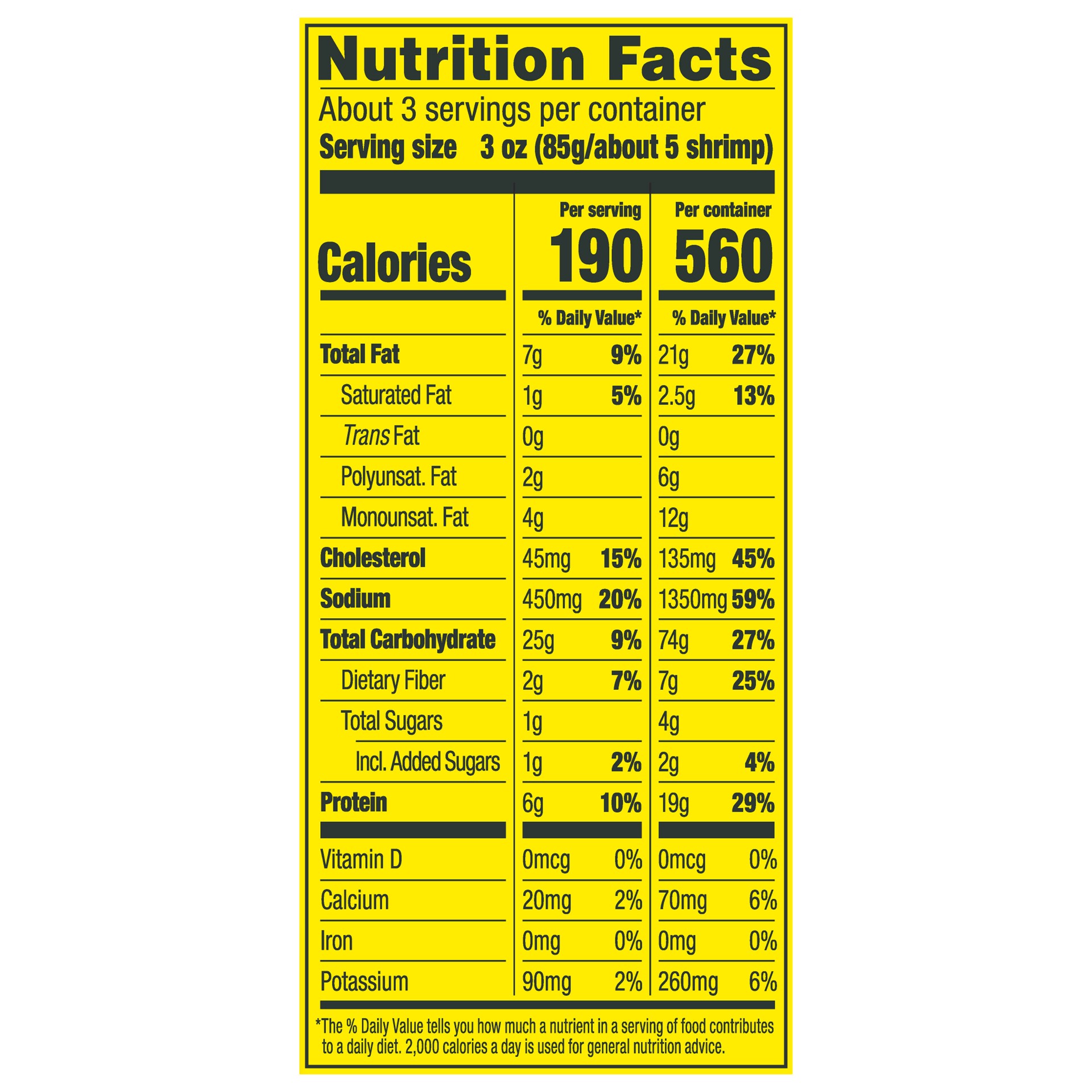 SHRIMP, BREADCRUMB COATING, VEGETABLE OIL. SHRIMP: SHRIMP, WATER, SALT, DI-, TRI-, AND POLYPHOSPHATE (TO RETAIN MOISTURE), SODIUM BISULFITE (PRESERVATIVE). BREADCRUMB COATING: WATER, WHEAT FLOUR, WHOL…