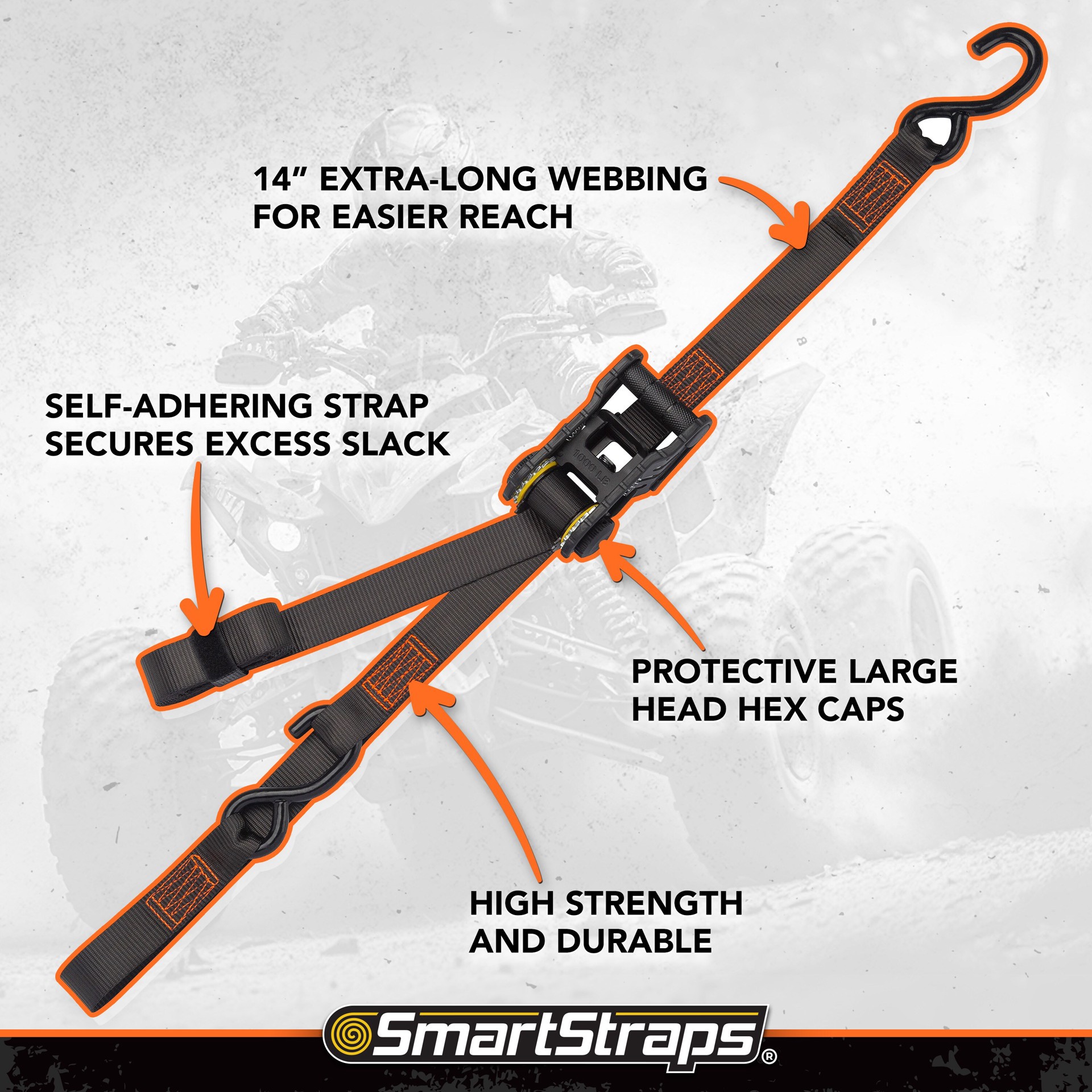 For securing heavier loads like motorcycles, boats, ATVs, appliances, and other cargo. Break strength of 3,000 lb and safe working load of 1,000 lb.. Military grade durable construction for optimal pe…