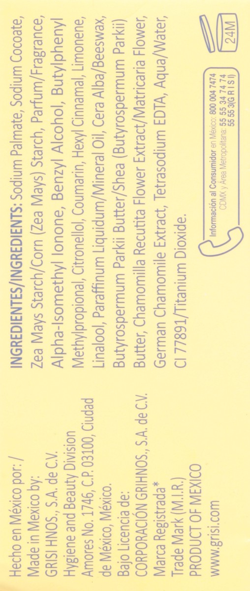 Sodium Palmate/Sodium Cocoate, Zea Mays Starch/Zea Mays (Corn) Starch, Parfum/Fragrance, Paraffinum Liquidum/Mineral Oil, Cera Alba/Beeswax, Butyrospermum Parkii Butter/Butyrospermum Parkii (Shea) But…