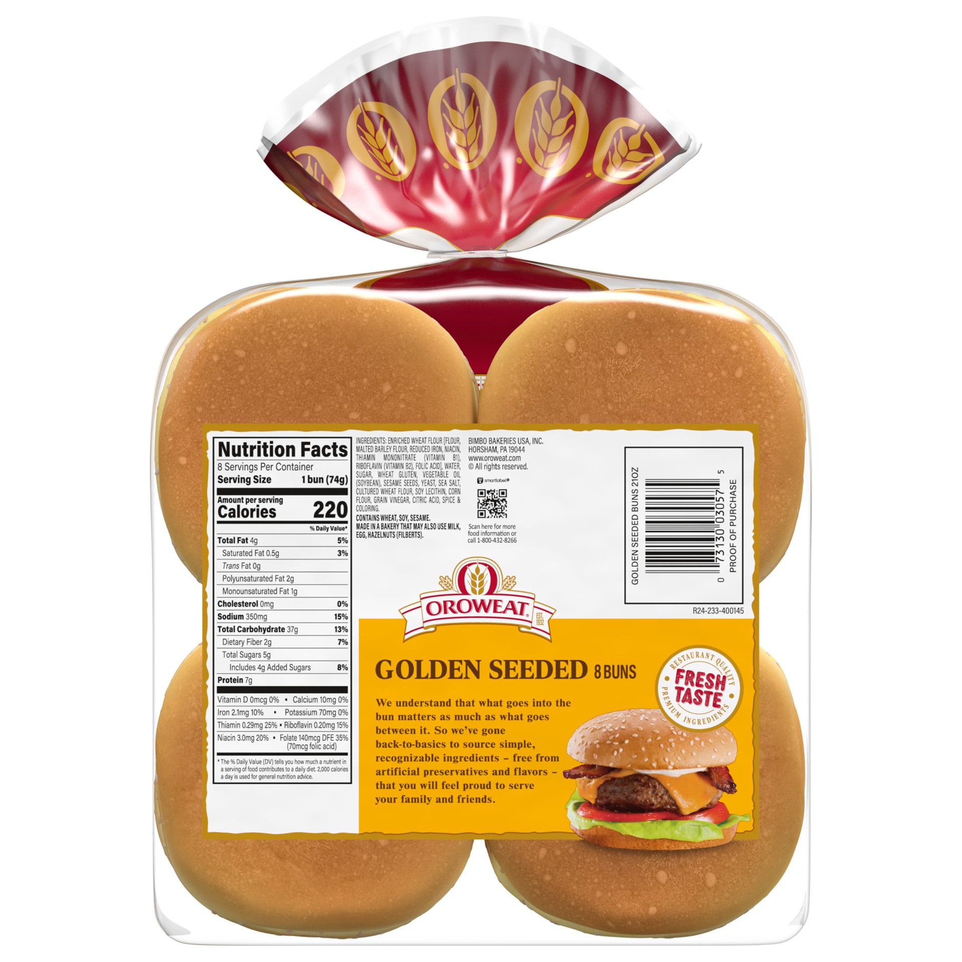Oroweat Golden Seeded Sandwich Buns are the perfect complement to any burger or sandwich. Our bakers make a rich golden dough that bakes up big and fluffy, then top each bun with crunchy sesame seeds.…