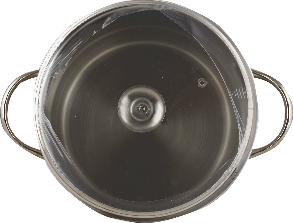 06179. Kitchen basics. Durable stainless steel. Glass lid. Dishwasher safe. Three year warranty. Made in India.