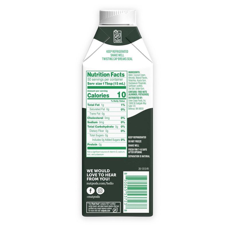 Water, Coconut Cream, Almonds, Natural Flavors, Pistachios, Acacia Gum, Dipotassium Phosphate, Sunflower Lecithin, Sea Salt, Gellan Gum.