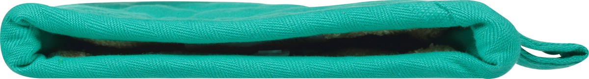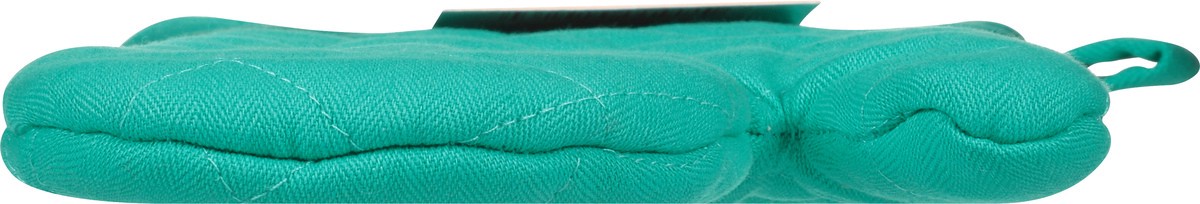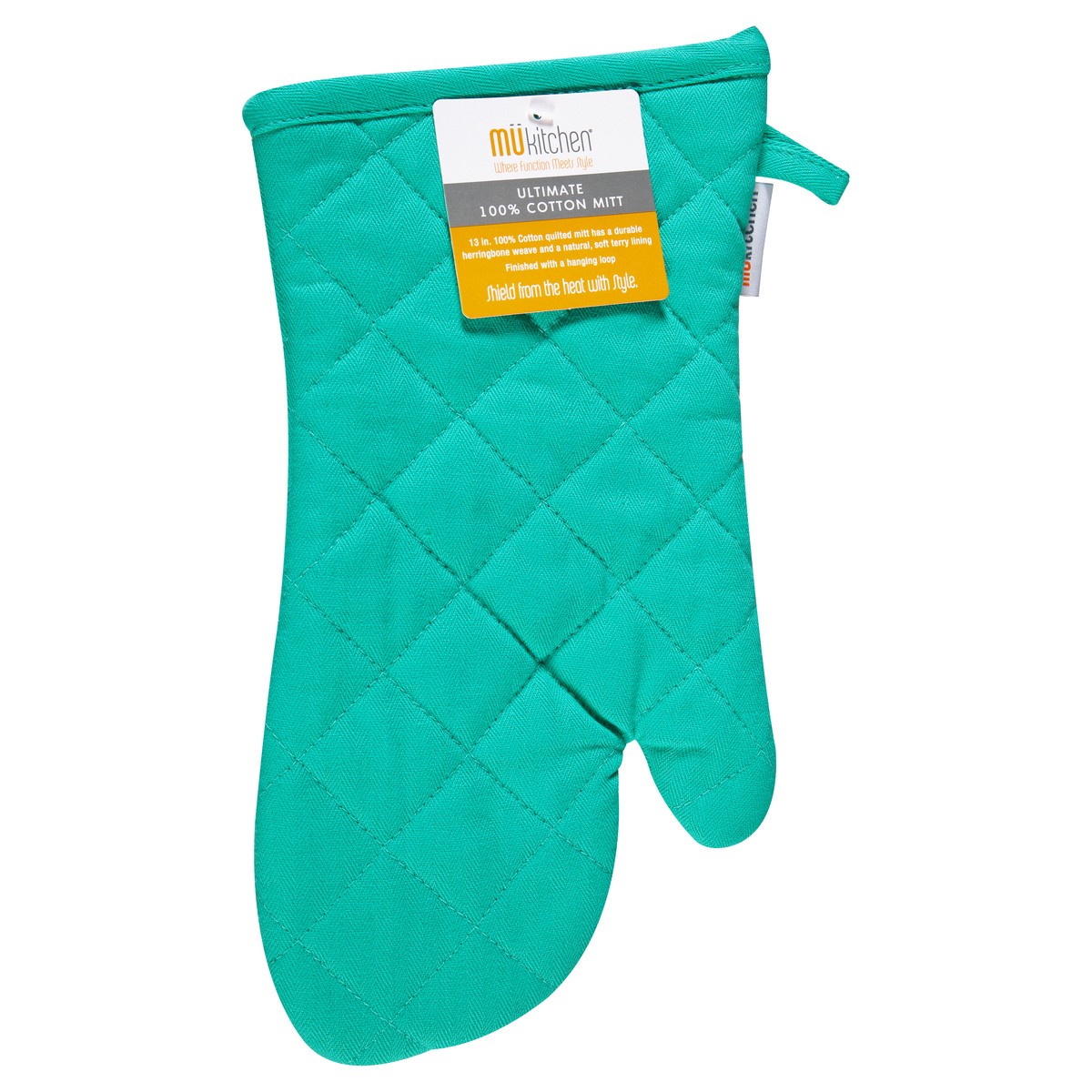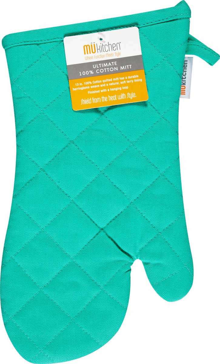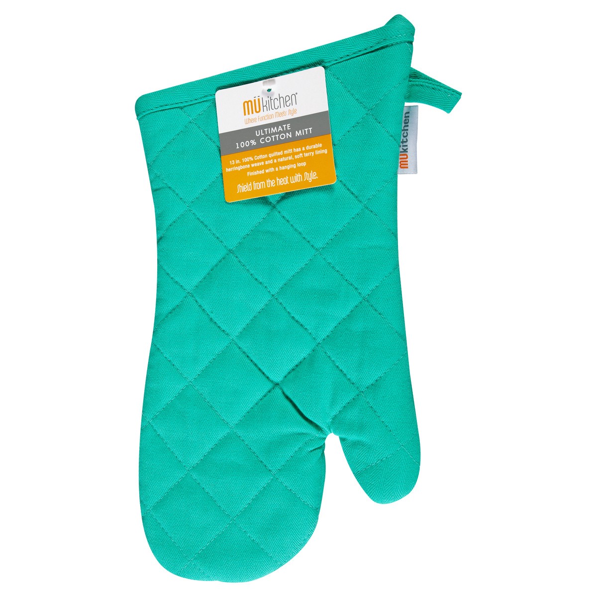 Where function meets style. 13 in. 100% cotton quilted mitt has a durable herringbone weave and a natural, soft terry lining finished with a hanging loop. Shield from the heat with style. Do you MU? w…
