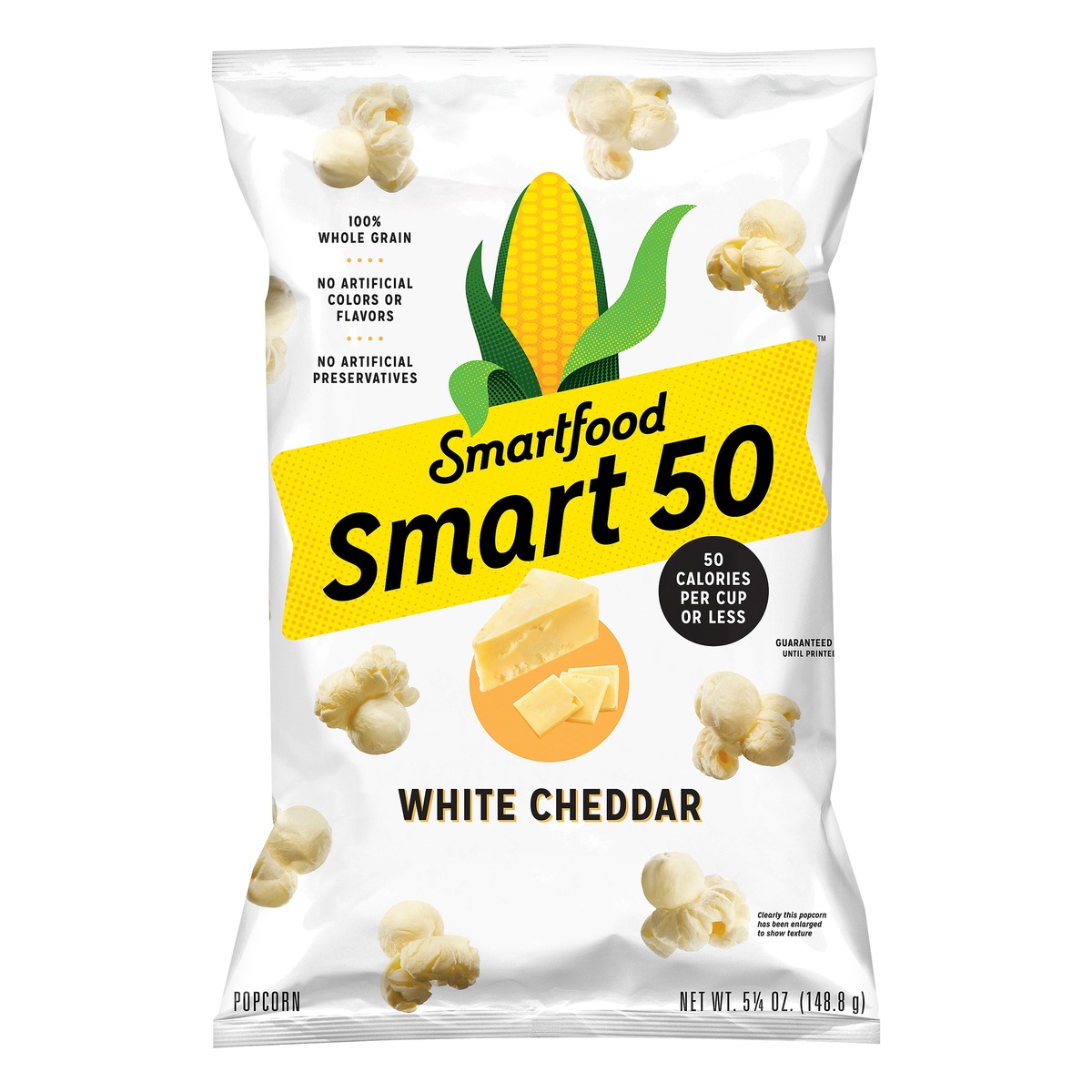 No artificial colors or flavors. 50 calories per cup or less. 100% whole grain. No artificial preservatives. What does the 50 in Smart50 mean? 50 Calories per cup or less! What! It’s like a cheesy sna…