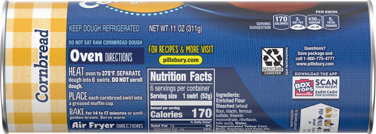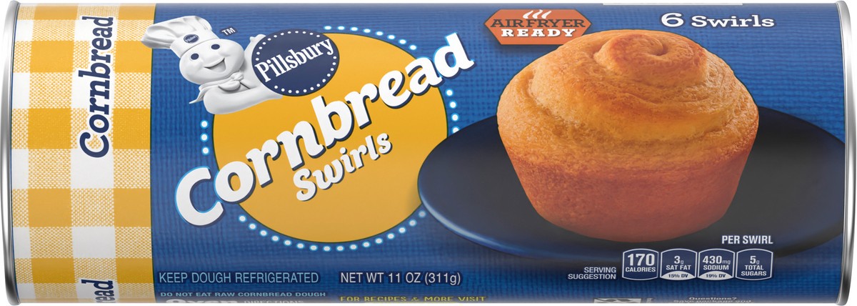 Pillsbury Cornbread Swirls, 6 Ct, Refrigerated Canned Dough, 11 oz