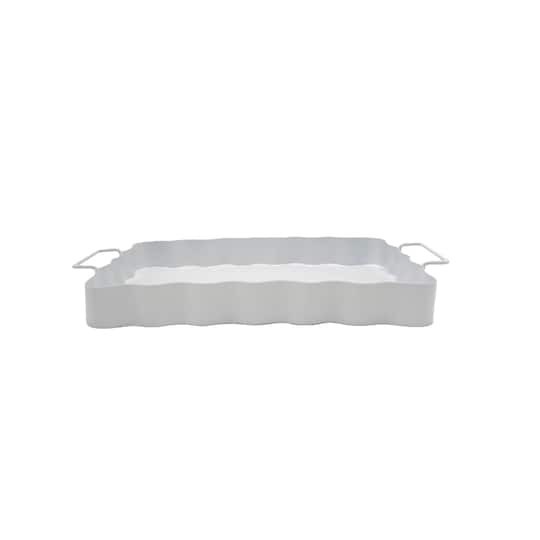 14" White Wavy-Edge Decorative Metal Tray By Ashland