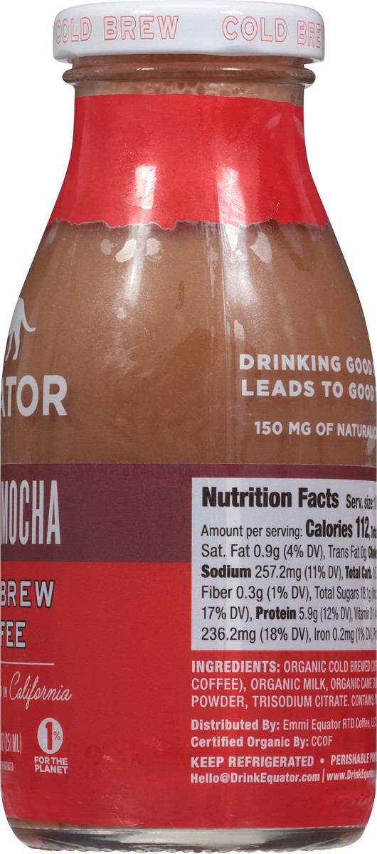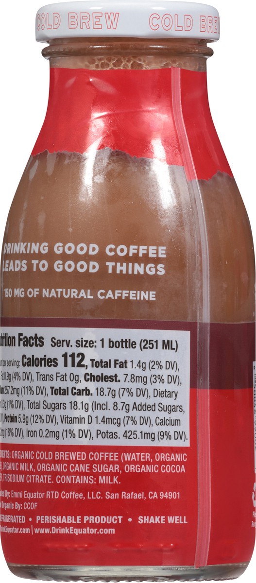 Organic Cold Brewed Coffee (Water, Organic Coffee), Organic Milk, Organic Cane Sugar, Organic Cocoa Powder, Trisodium Citrate.