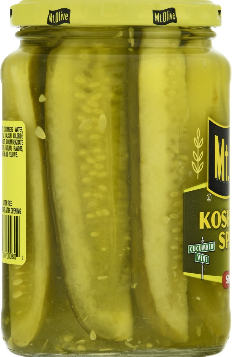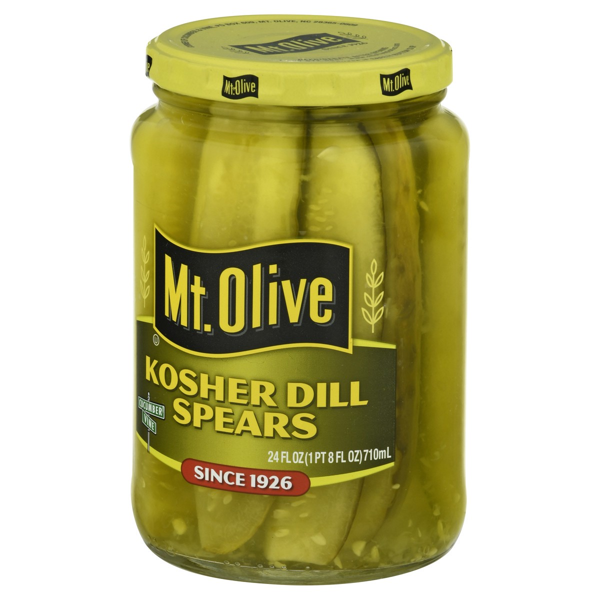 The Kosher Dill deliciousness you know and love from Mt. Olive in pickle spear form. These are the pickle spears you crave, and the classic Kosher Dill flavor you''be been looking for. It''s not the p…