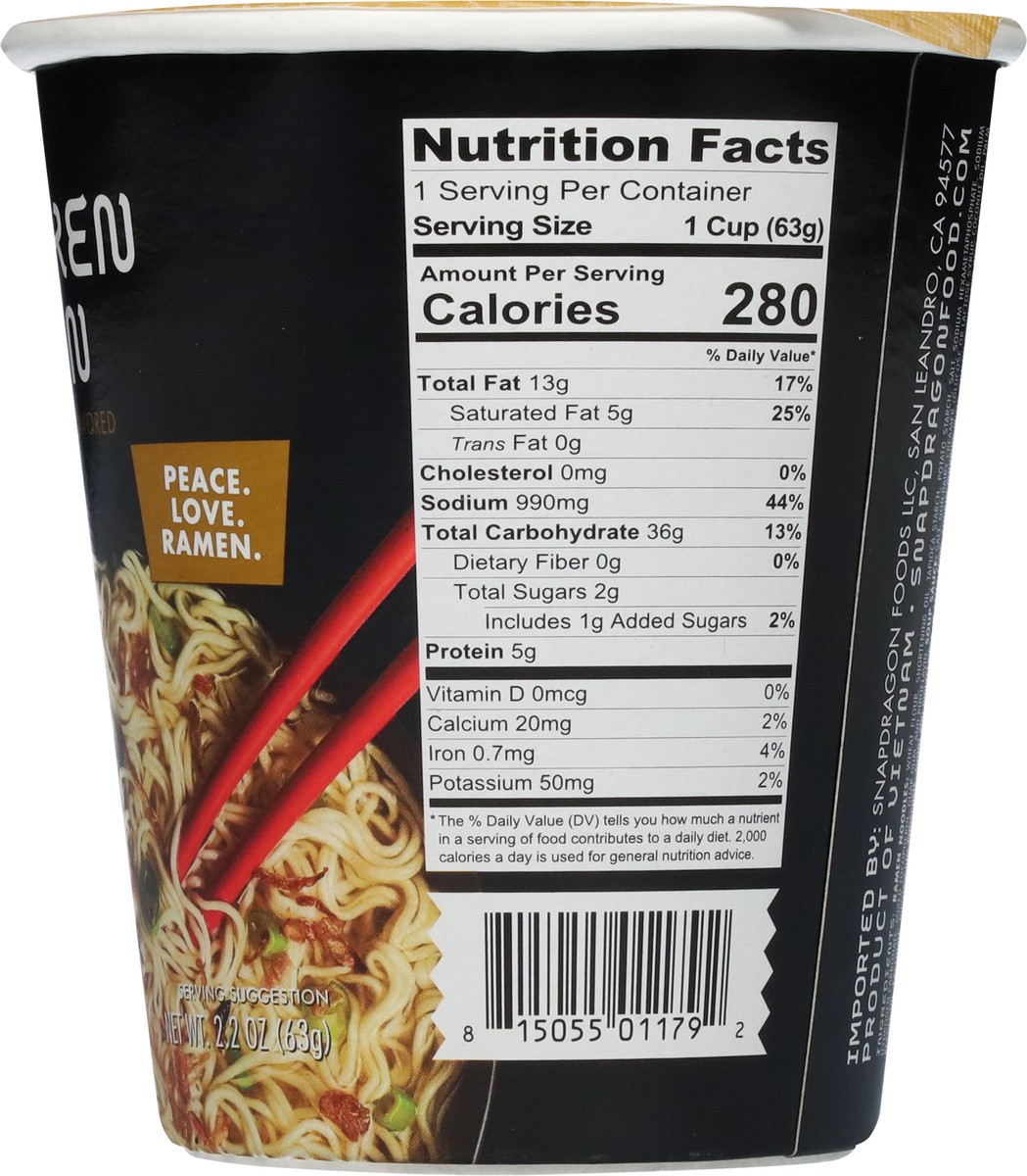 Savory chicken flavor broth with authentic ramen noodles. No artificial flavors. Ready in 3 minutes. No MSG added Contains small amount of naturally occurring glutamate. snapdragonfood.com. Facebook. …