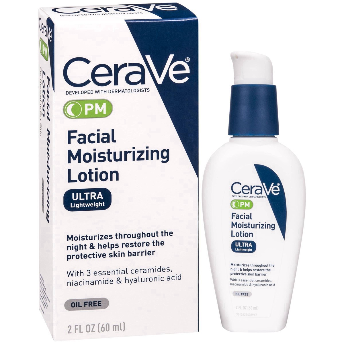 Developed with dermatologists, CeraVe PM Lightweight Facial Moisturizing Lotion for Nighttime use has an ultra-lightweight, unique formula that moisturizes throughout the night and helps restore the p…