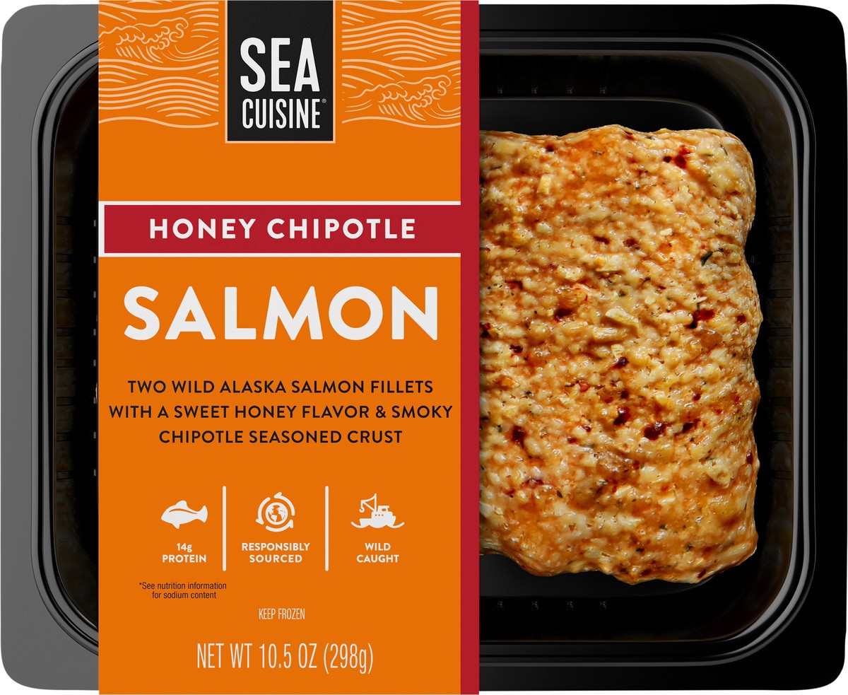 Sea Cuisine''s chefs did the work so you can make delicious seafood easily at home. Each pack includes two Wild Alaska Salmon fillets with a sweet honey flavor & smoky chipotle seasoned crust. Crafted…