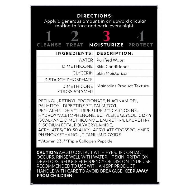 Health Facts: Mineral Oil-Free, Phthalate-Free, Contains Retinol, No Fragrance Added, Contains Vitamin B5, Contains Peptides, Dye-Free