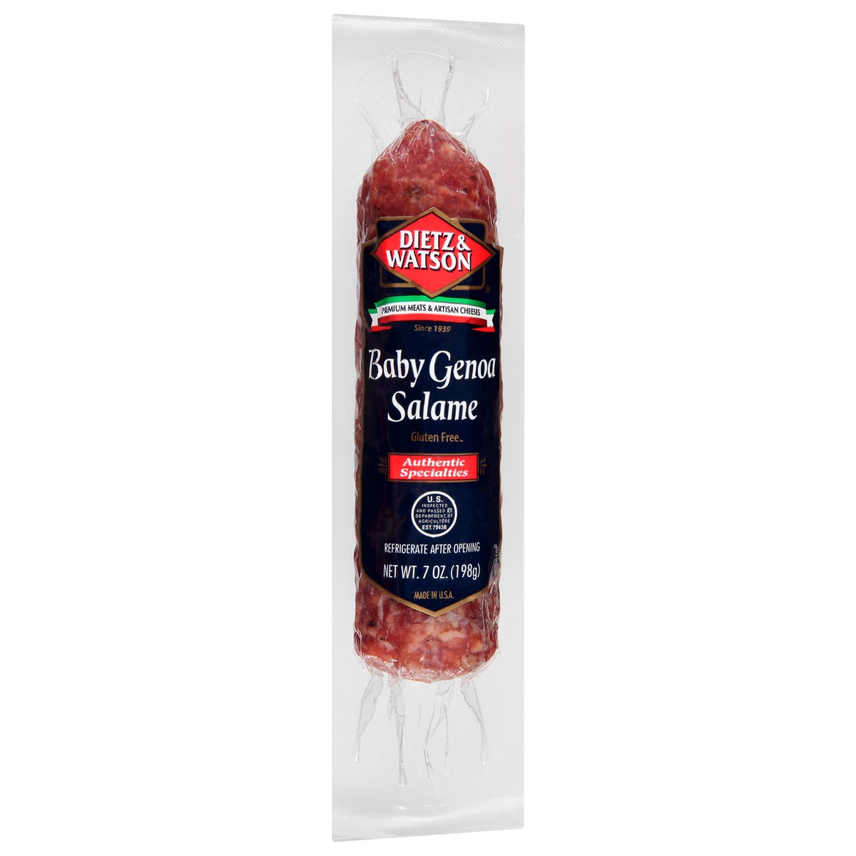 Gluten free. Authentic specialties. Premium meats & artisan cheese. Since 1939. U.S. Inspected and passed by Department of Agriculture EST. 7543B. www.dietzandwatson.com. Made in USA.