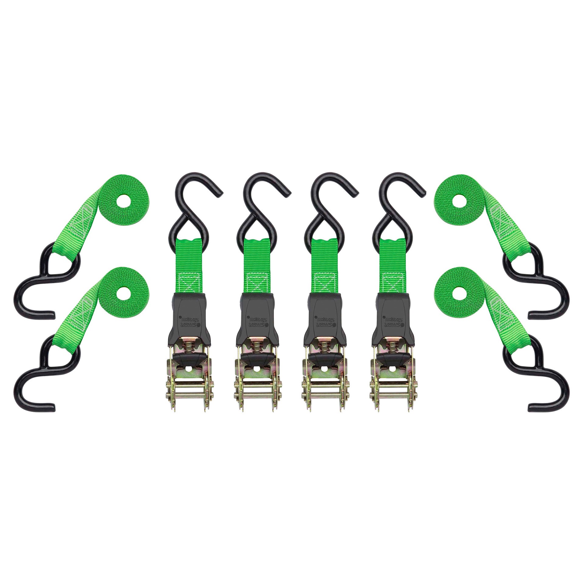 SmartStraps 1-in x 10-ft Ratchet Strap with S-Hook 1500-lb Break Strength 4 -Pack