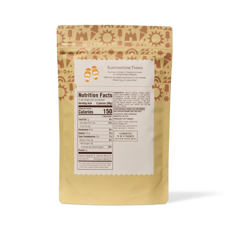 PEANUT BUTTER (PEANUT PASTE, SUGAR, MILK POWDER, HYDROGENATED COCONUT OIL, SOY LECITHIN), STRAWBERRY FILLING (SUGAR, GLUCOSE SYRUP, STRAWBERRY POWDER, WATER, NATURAL FLAVOR, BEET ROOT RED COLOR, GLYCE…