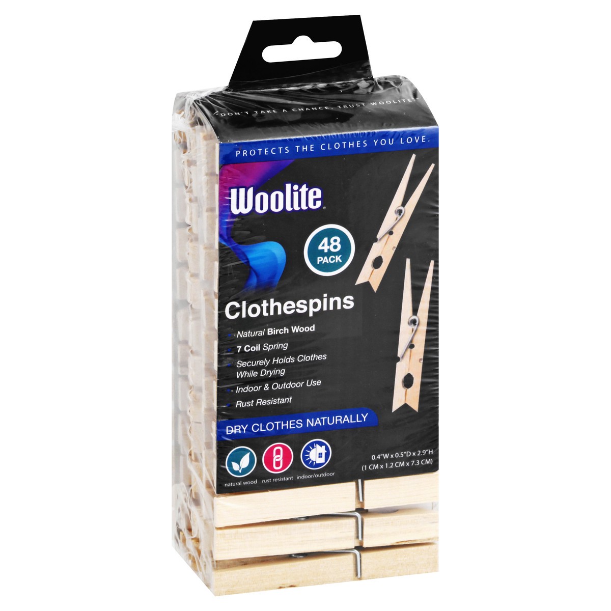 Protects the clothes you love. 7 coil spring. Securely holds clothes while drying. Indoor & outdoor use. Rust resistant. Dry clothes naturally. Natural wood. Don't take a chance, trust Woolite.