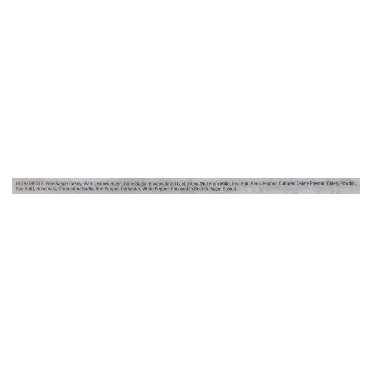 Free Range Turkey, Brown Sugar, Cane Sugar, Encapsulated Lactic Acid (Not From Milk), Sea Salt, Black Pepper, Cultured Celery Powder (Celery Powder, Sea Salt), Rosemary, Granulated Garlic, Red Pepper,…