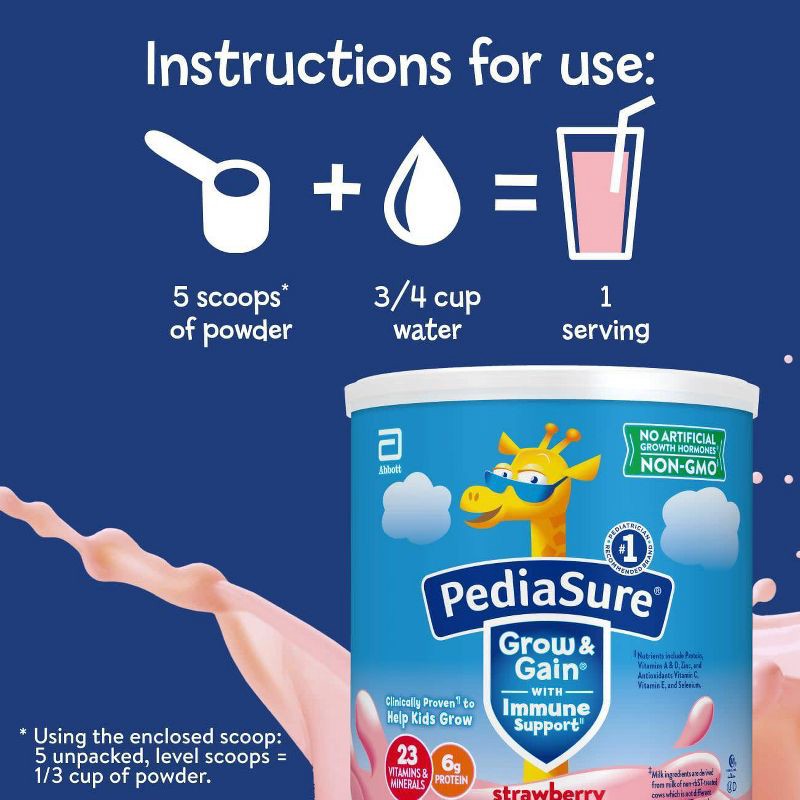 PediaSure Grow & Gain with Immune Support kids shake mix is clinically proven* to help kids grow. It has 23 minerals & vitamins for kids and 7 key nutrients for immune support, including 6 grams of pr…