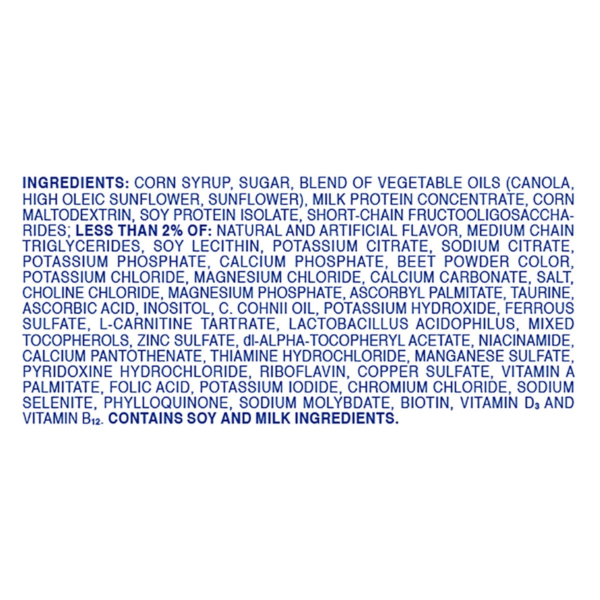 Corn Syrup, Blend of Vegetable Oils (High Oleic Sunflower, Canola, Corn), Corn Maltodextrin, Sugar, Milk Protein Concentrate, Soy Protein Isolate, Short-Chain Fructooligosaccharides: Less than 2% of: …