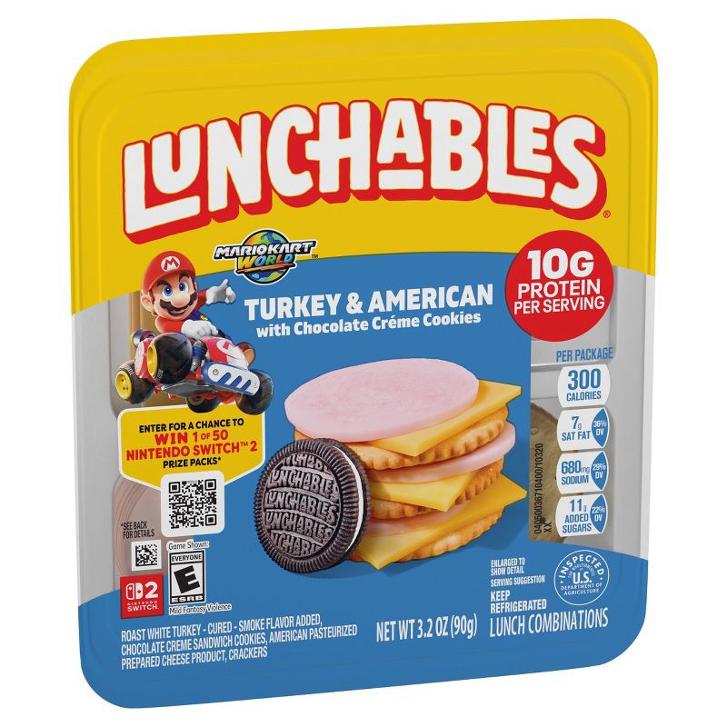 - One 3.2 oz pack of Lunchables Turkey & American with Chocolate Creme Cookies