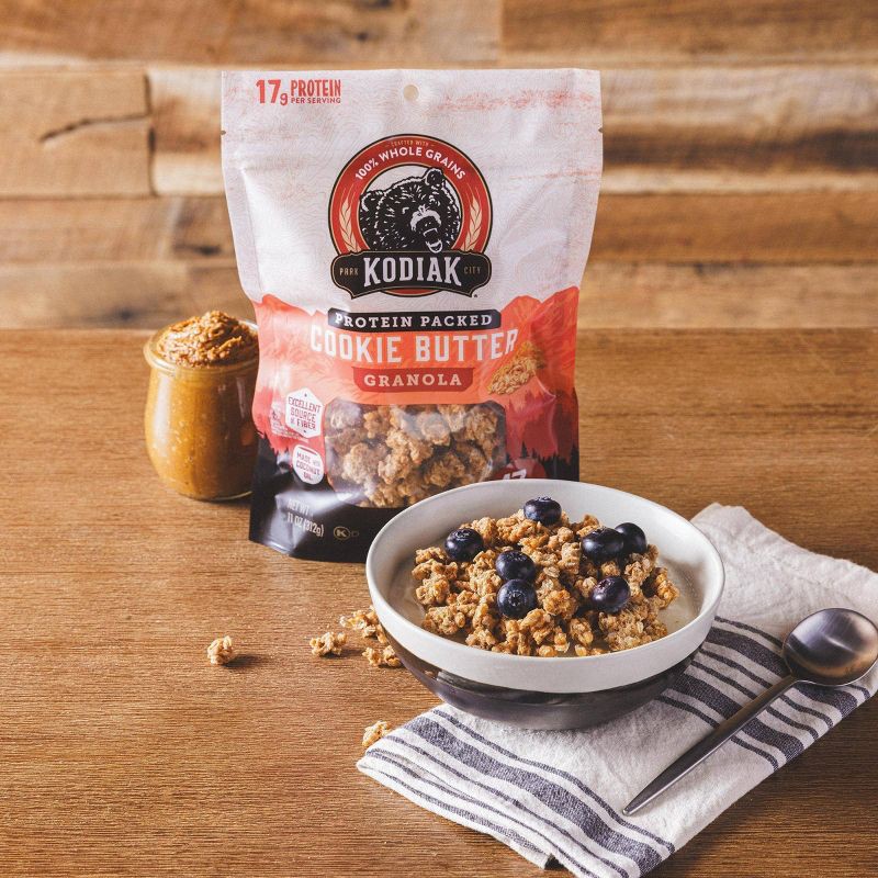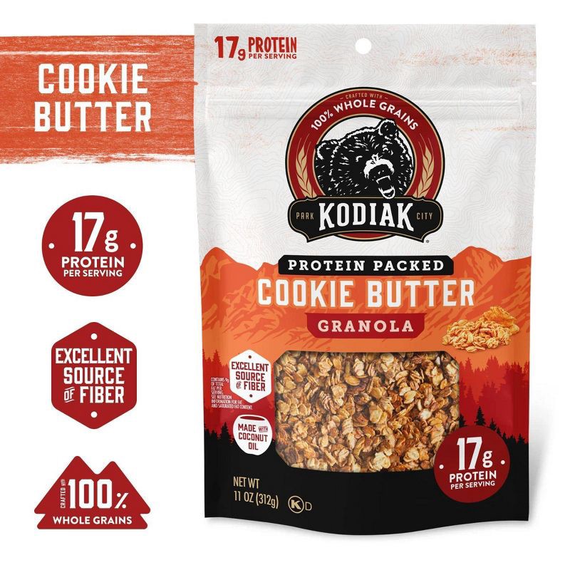 Kodiak Cookie Butter Granola is the quick, protein-packed fuel you need before your next adventure. Craving a delicious crunch with your yogurt? Use this cookie granola as a topping. Want a protein sn…