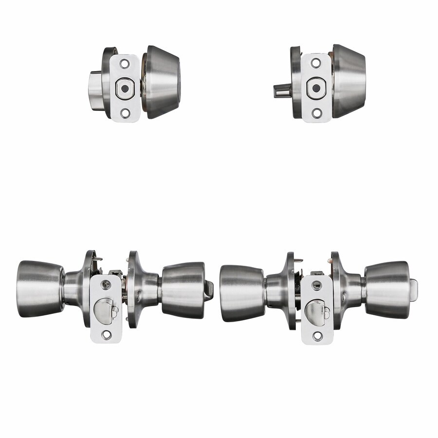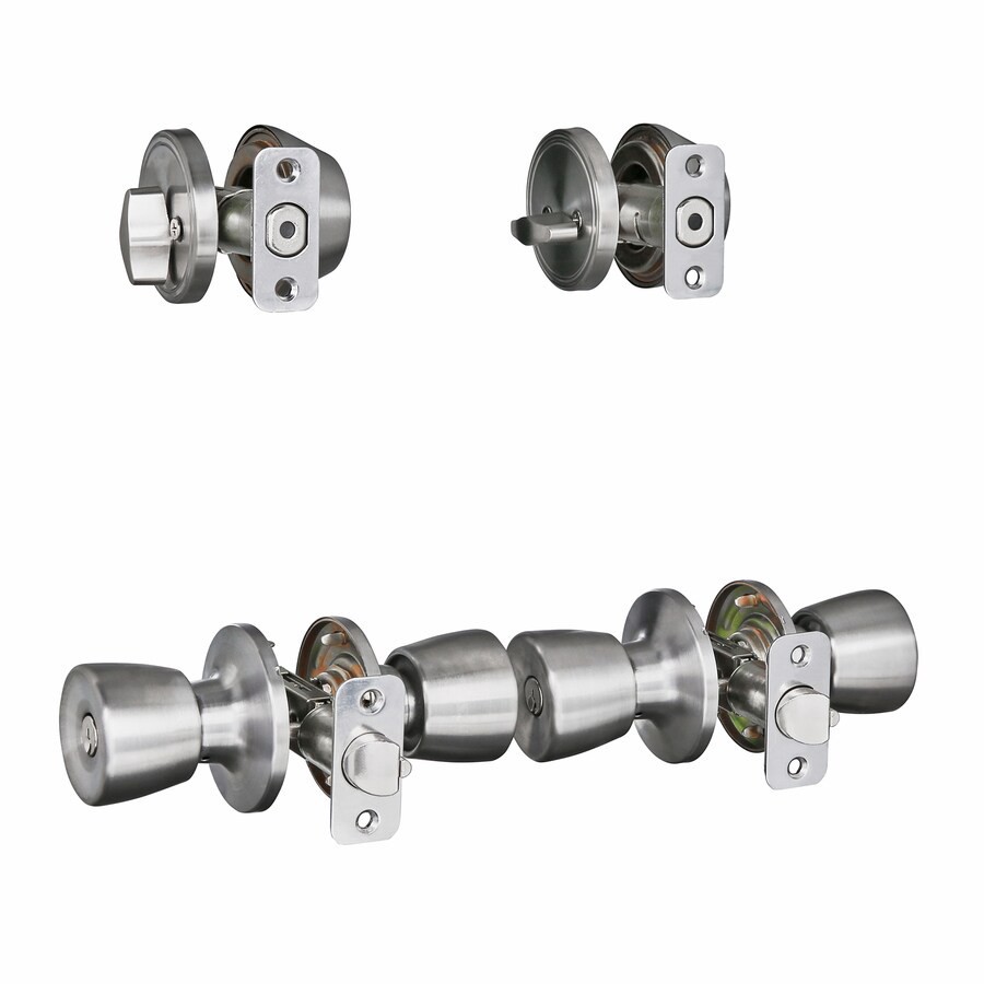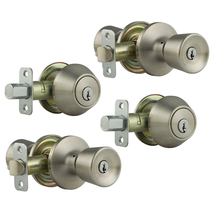 Kwikset Satin Nickel Single-Cylinder Deadbolt and Keyed Entry Door Knob Combo Pack