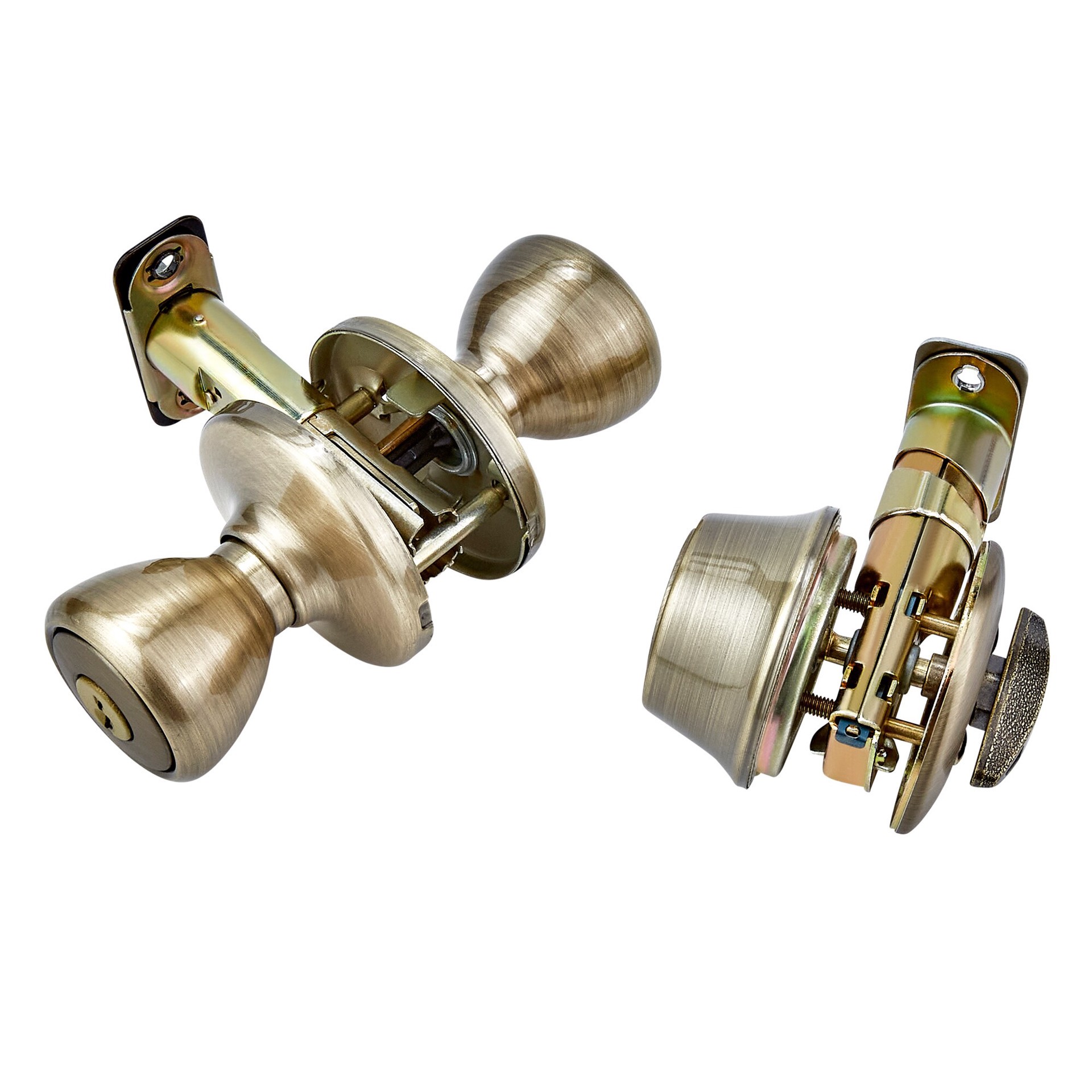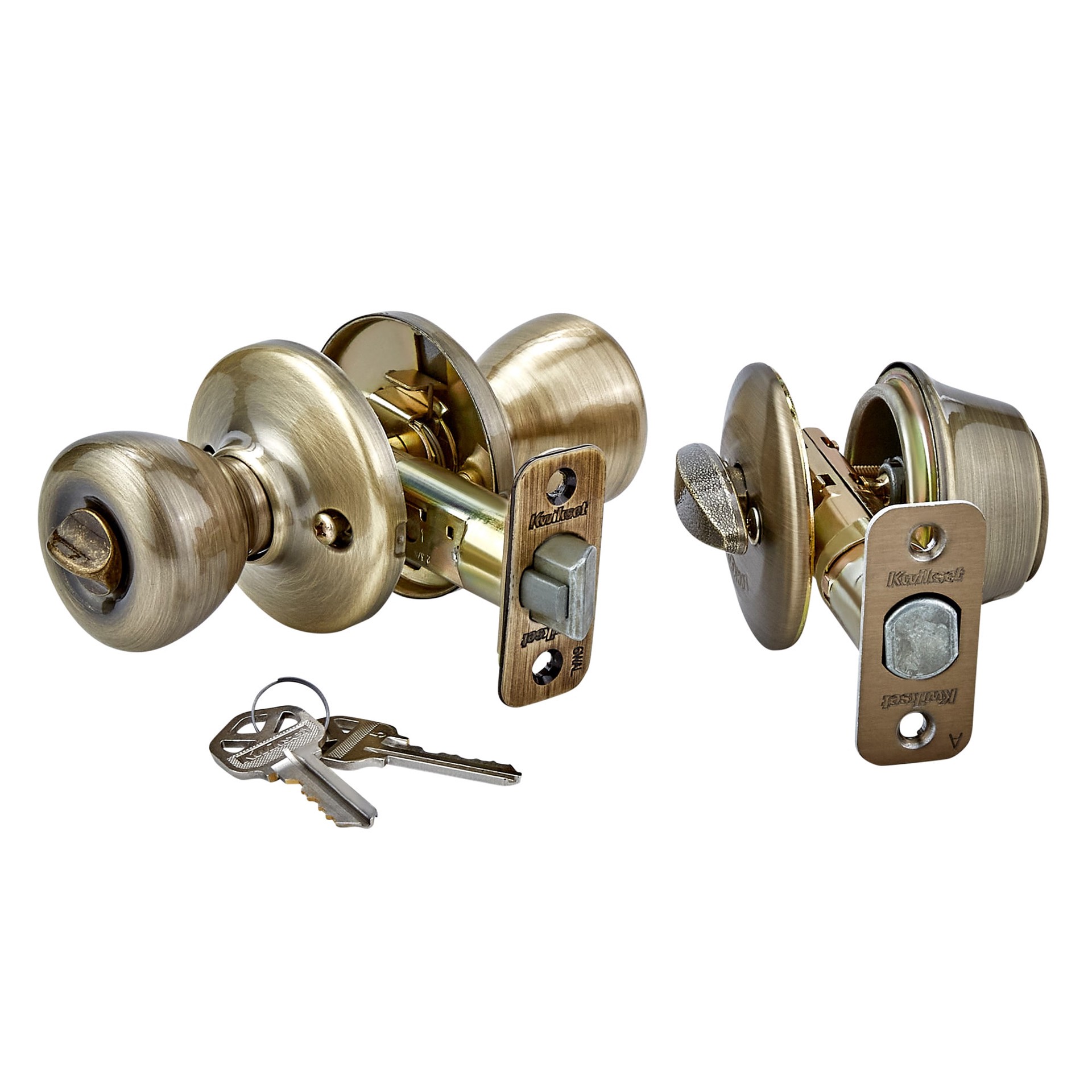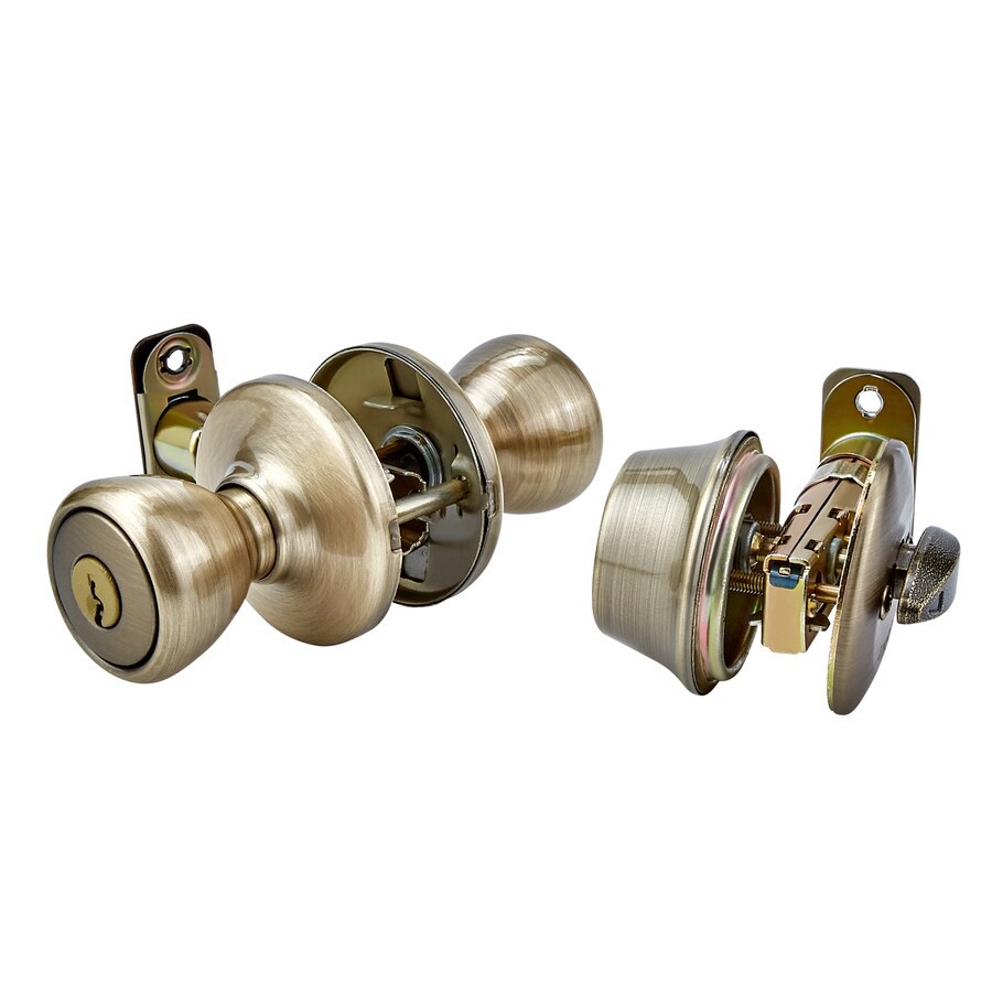 Kwikset Tylo Antique Brass Exterior Single-Cylinder Deadbolt and Combined Door Knob Combo Pack