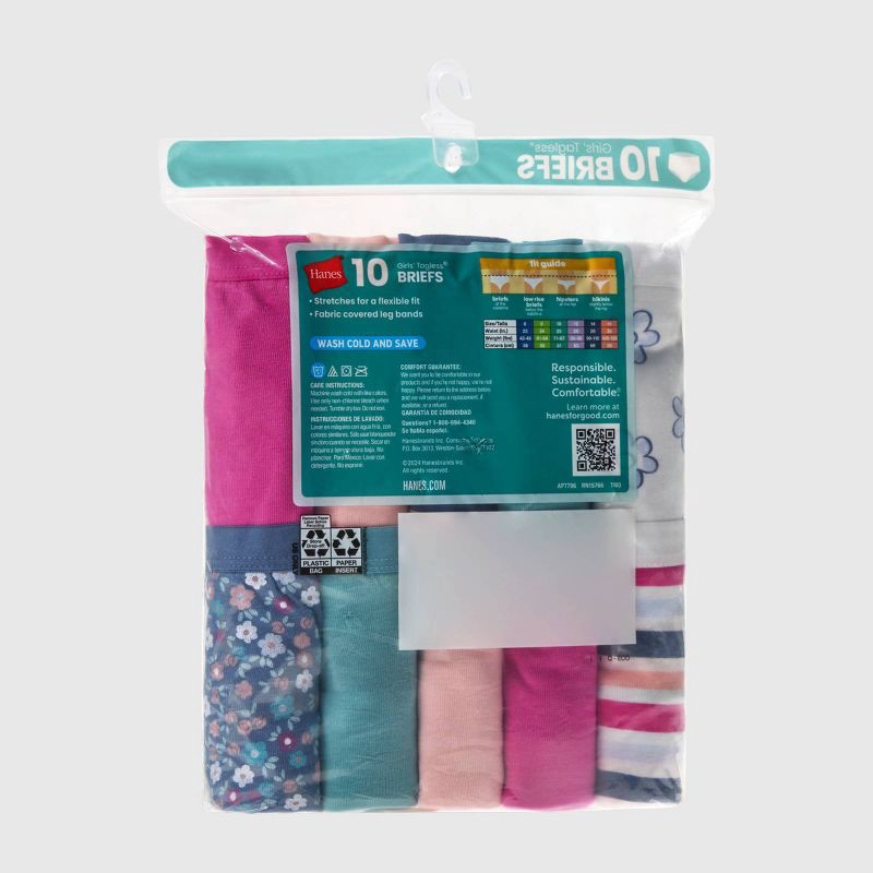 Hanes Girls' 10pk Cotton Stretch Briefs Underwear - colors may vary 14