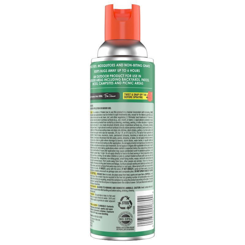 OFF!® Outdoor Insect Fogger repels and kills flies, mosquitoes, non-biting gnats, small flying moths, multi-colored Asian lady beetles, and other listed insects for up to 6 hours in your outside livin…