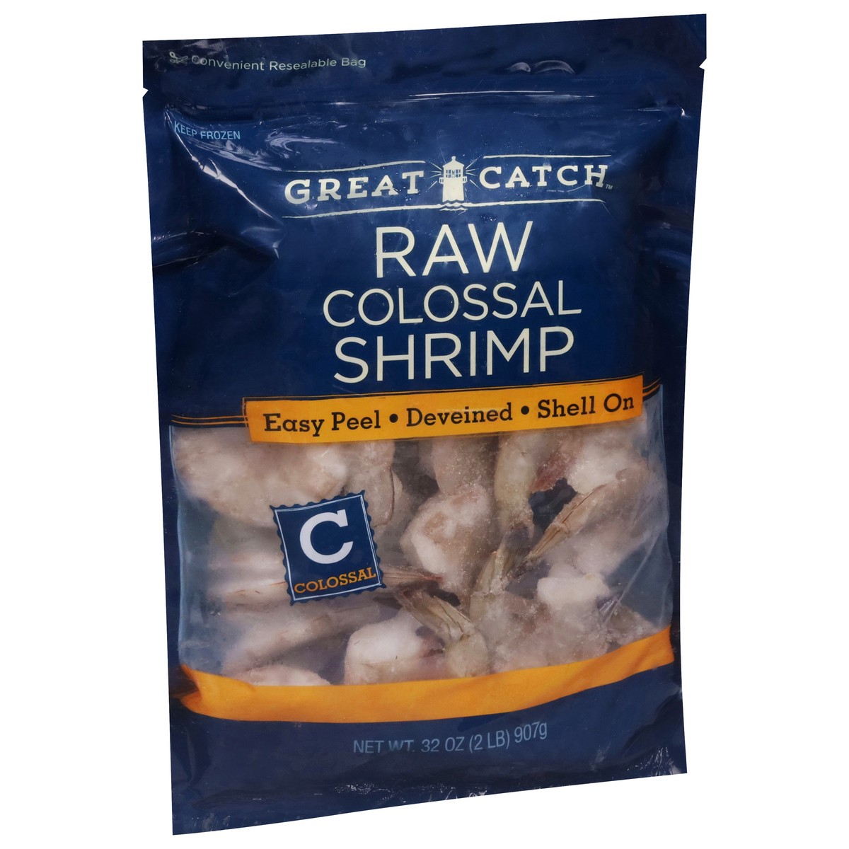 If you're a fan of colossal shrimp, pick up this 2 lb bag by Great Catch. Their shells are easy to peel, plus they're already deveined, speeding up your time in the kitchen. And with about 26 - 30 shr…