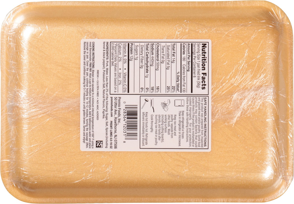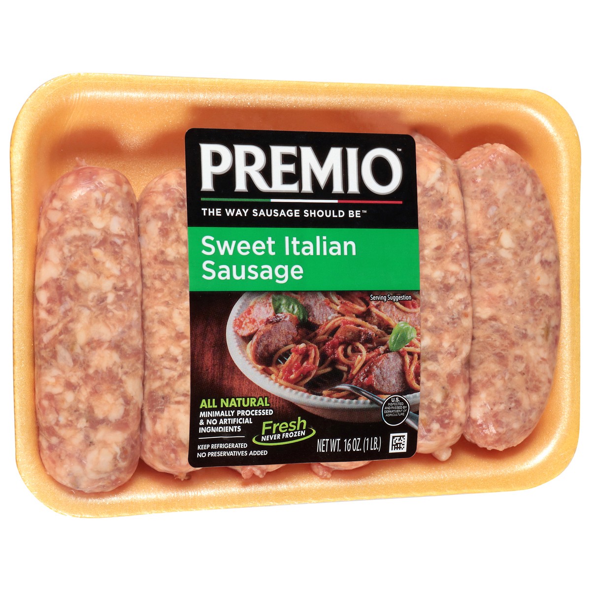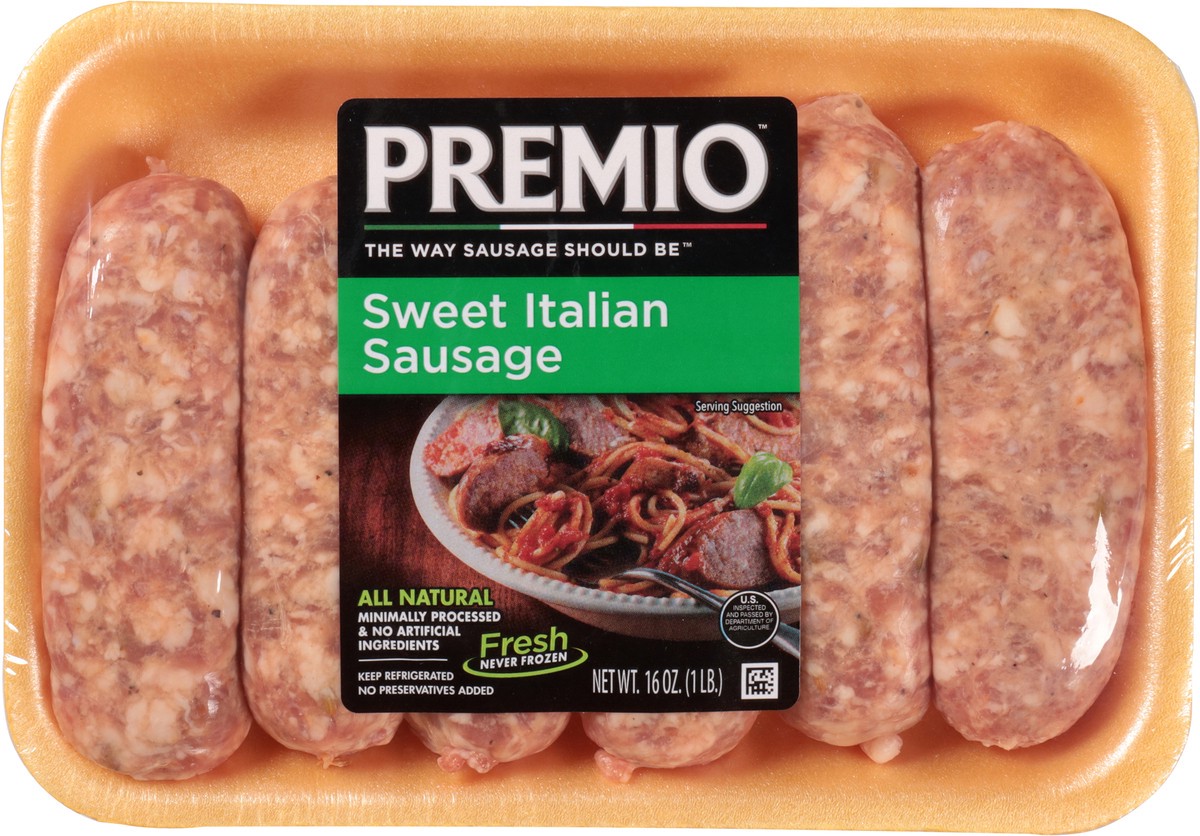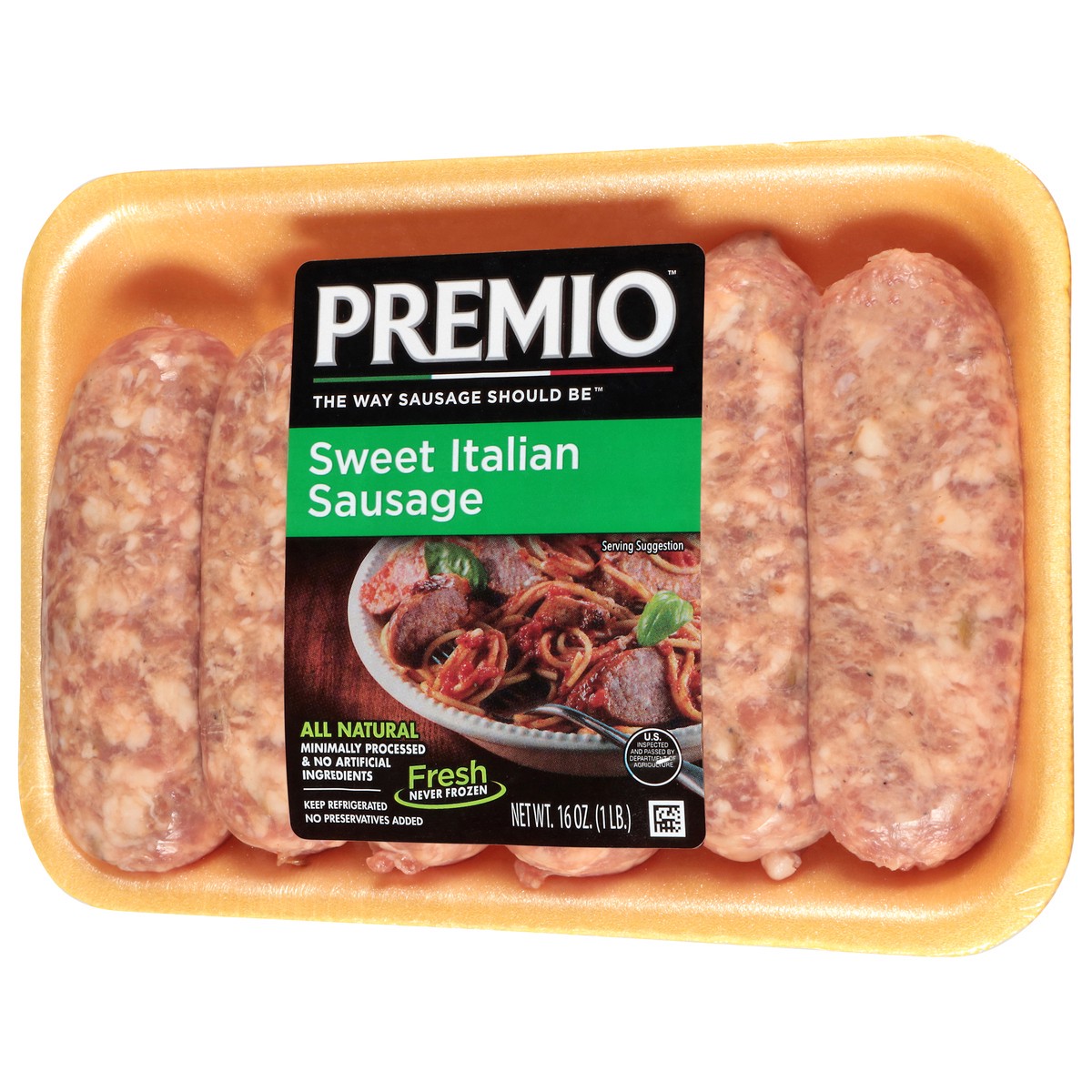 The way sausage should be. No preservatives added. US inspected and passed by Department of Agriculture. Fresh. Gluten free. No MSG added. premiofoods.com.