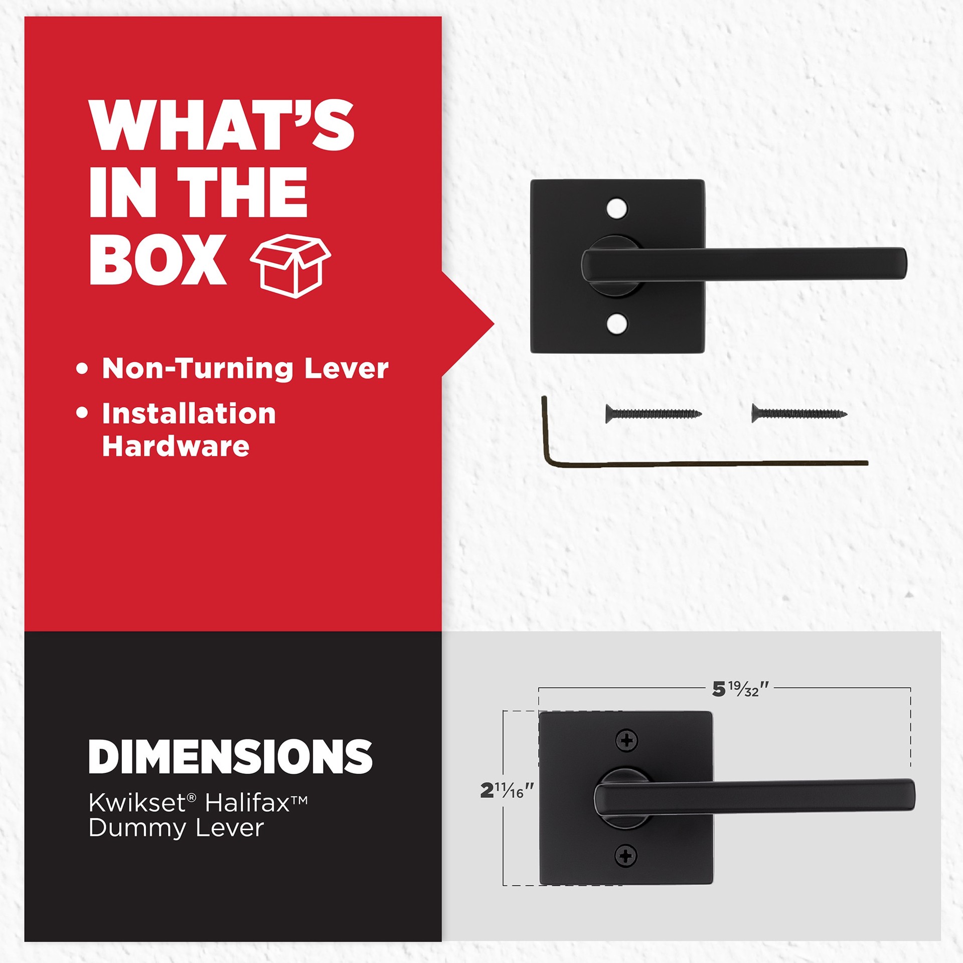 Kwikset Halifax Square Matte Black Interior or Dummy Door Handle
