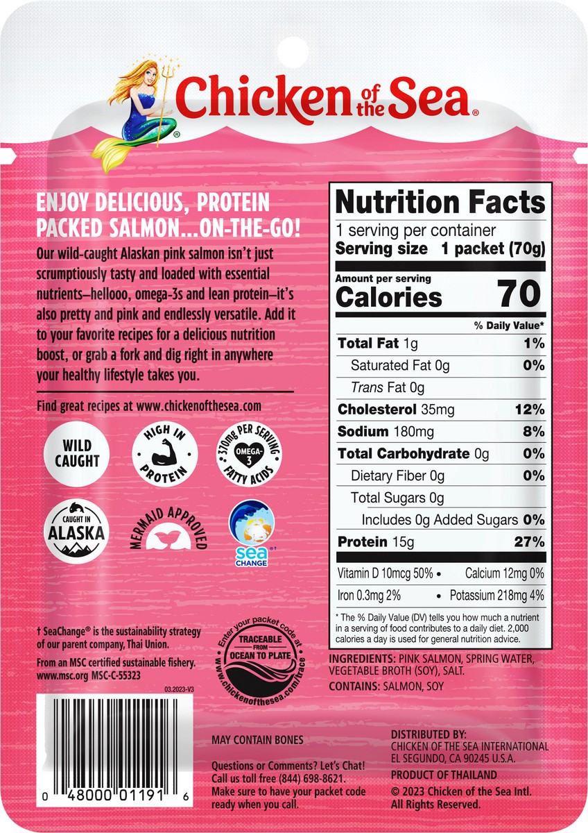 Chicken Of The Sea Wild Caught Alaskan Pink Salmon In Spring Water Packet - 2.5 Oz