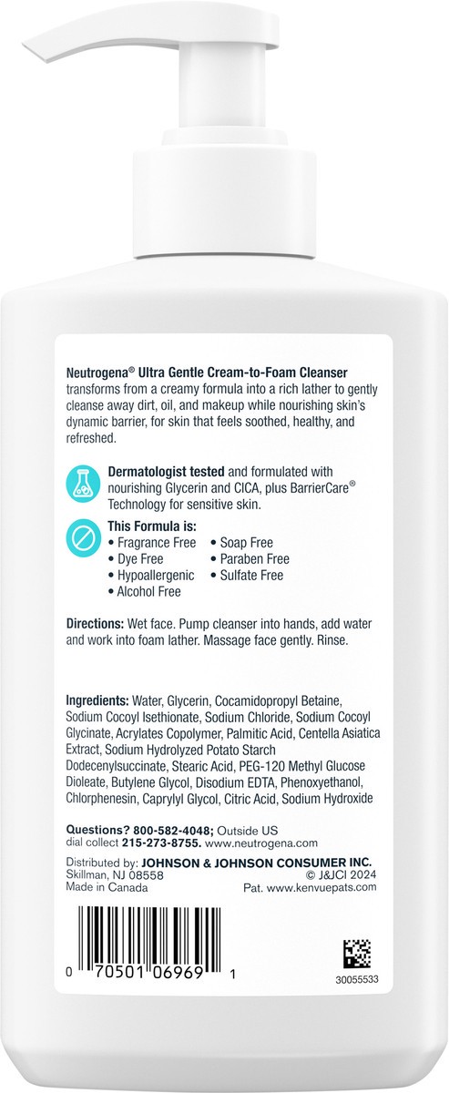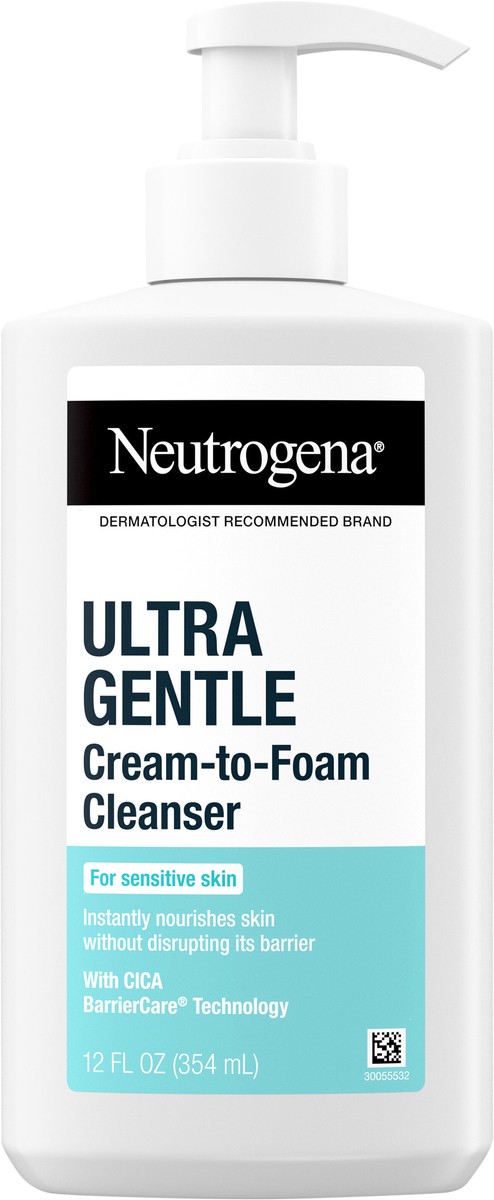 Neutrogena Ultra Gentle Cream-to-Foam Face Wash, Fragrance-Free, 12 fl oz