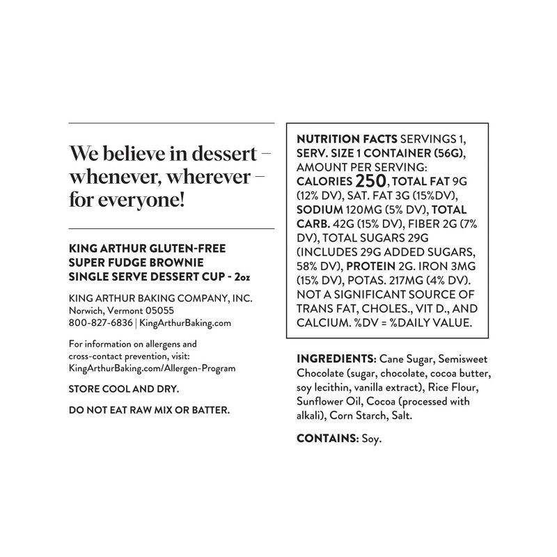 - King Arthur Gluten-Free Single Serve Super Fudge Brownie Mix, is Non-GMO Project Verified; Certified Gluten-Free by The GFCO, a program of the Gluten Intolerance Group (GIG); Certified Kosher