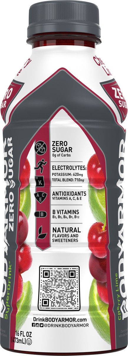 BODYARMOR Zero Sugar Sports Drink Cherry Lime. This sports drink provides real hydration with zero sugar and zero grams of carbs. Whether you're preparing for a workout, pushing through a tough traini…