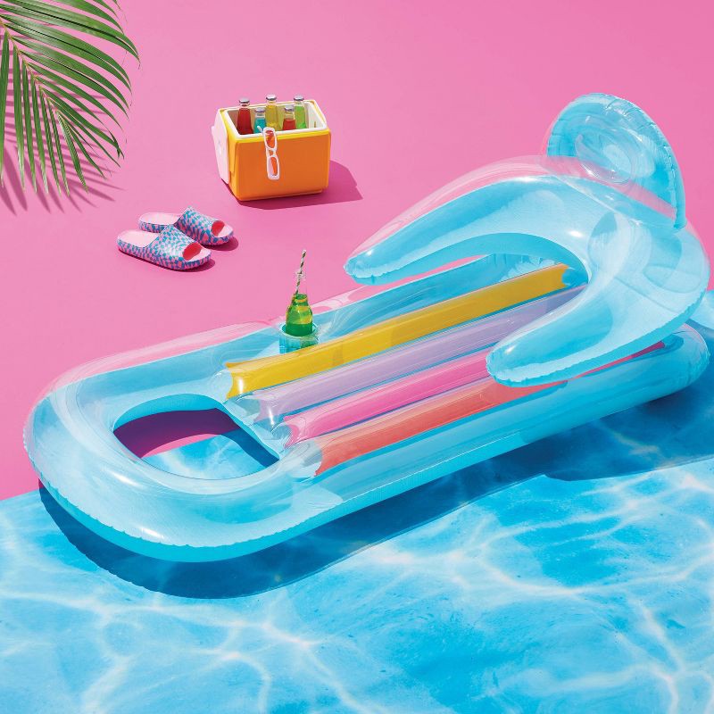 Experience pure relaxation with the Fashion Pool Lounge Float from Sun Squad™ in blue. This reclining float comes with a comfy arm rest and a head rest along with a cupholder for effortless refreshmen…