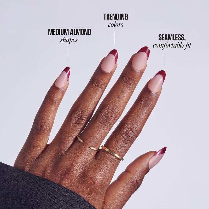 - Red Almond Medium Glue On Nails 24 Fake Nails with Nail Glue