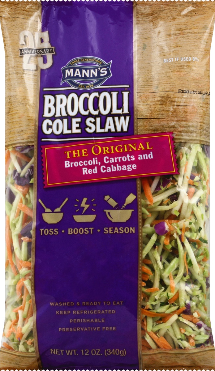 Keep refrigerated. Perishable. Toss: Toss with grapes, fruits, sliced almonds and poppy seed dressing for a sweet, crunchy delight. Toss chopped Mann's Broccoli Cole Slaw with seasoned taco meat and y…