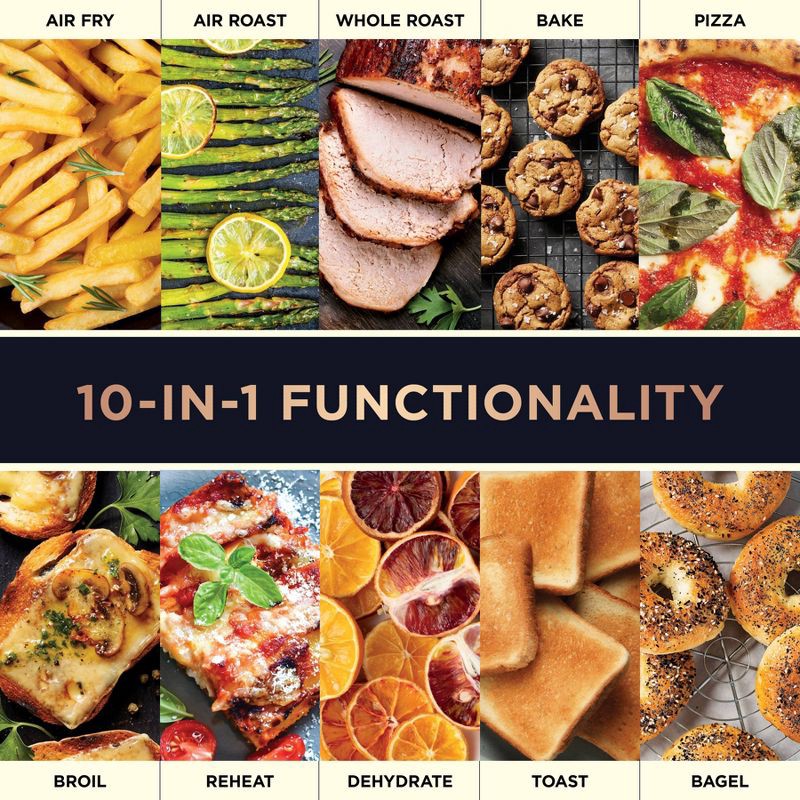 - 10-IN-1 VERSATILITY: Choose from Air Fry, Air Roast, Whole Roast, Bake, Pizza, Broil, Reheat, Dehydrate, Toast, and Bagel—all in one appliance.