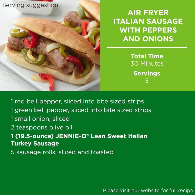 - Use JENNIE-O Sweet Italian Turkey sausage at your next gathering; Cooks great on the grill or in your air fryer