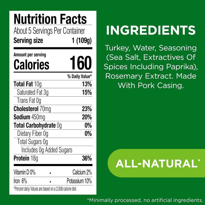 - Includes one 19.5 oz package of JENNIE-O Sweet Italian Fresh Turkey Sausage Link, (5 sausage links per package) All-Natural *Minimally processed, no artificial ingredients