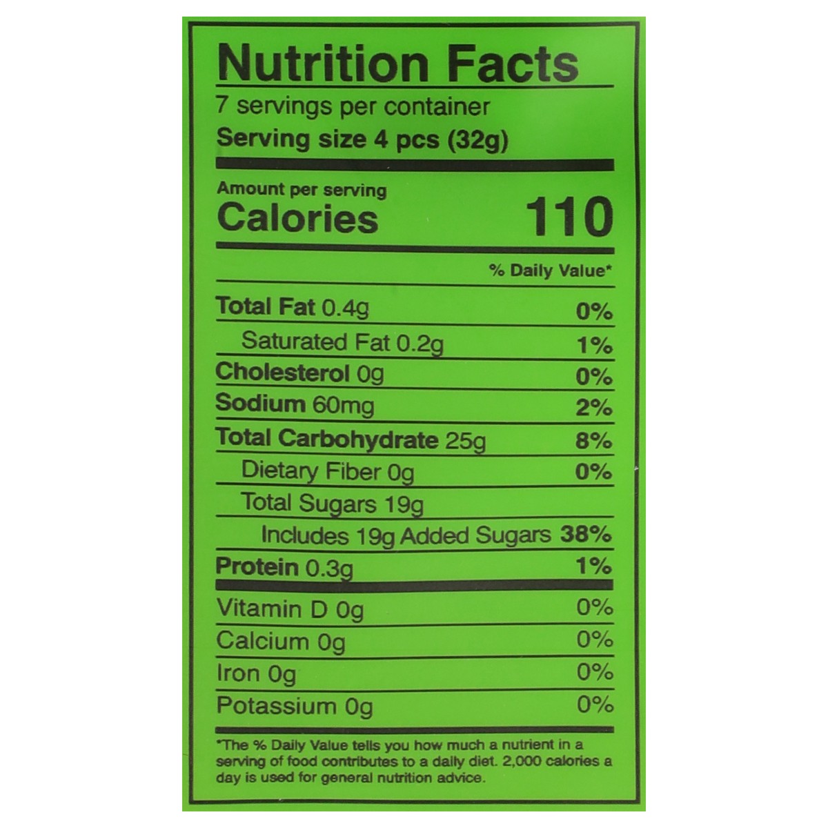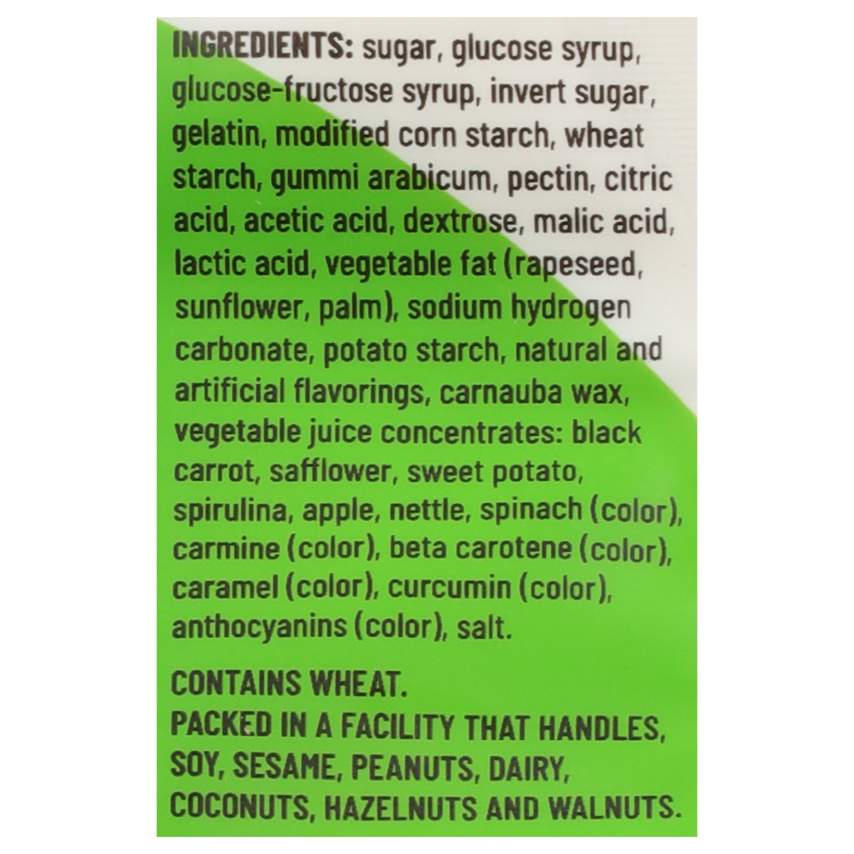 Sugar, Glucose Syrup, Glucose-Fructose Syrup, Invert Sugar, Gelatin, Modified Corn Starch, Wheat Starch, Gummi Arabicum, Pectin, Citric Acid, Acetic Acid, Dextrose, Malic Acid, Lactic Acid, Vegetable …