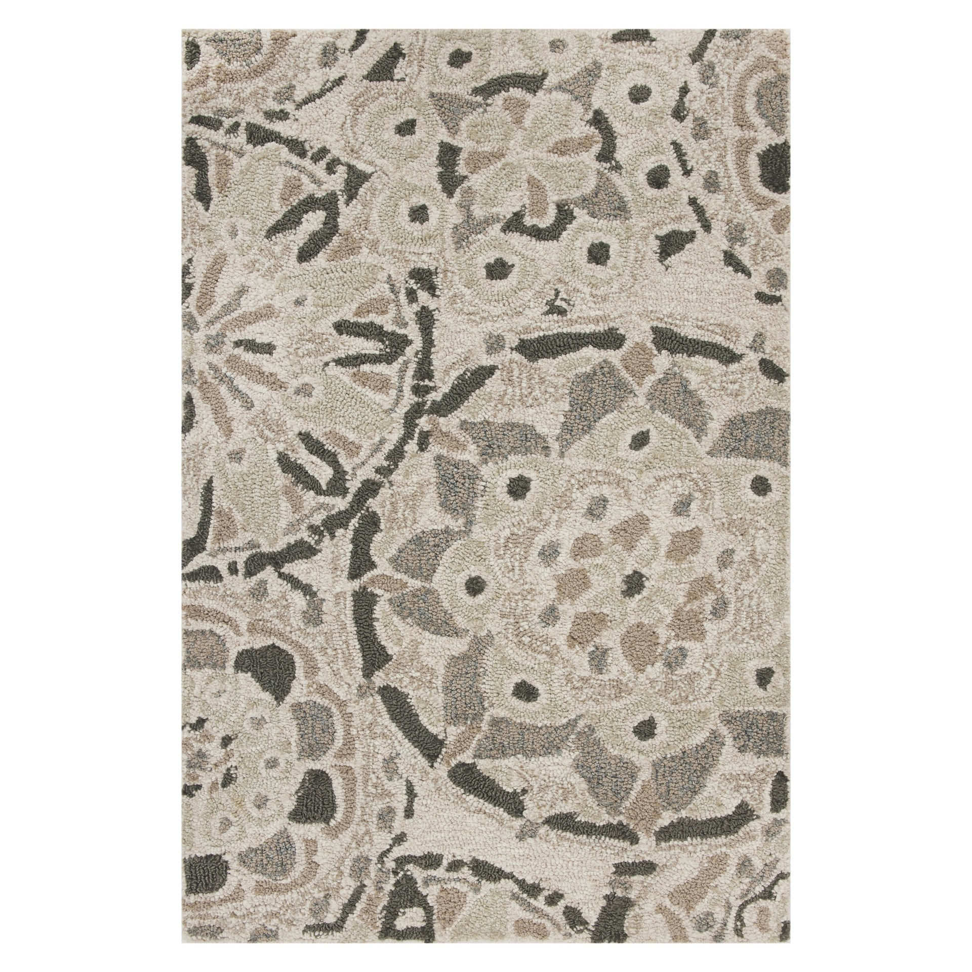 allen + roth with STAINMASTER 2 x 3 (ft) Tufted Polypropylene Solstice Grey Rectangular Indoor/Outdoor Medallion Oriental House Washable Throw rug
