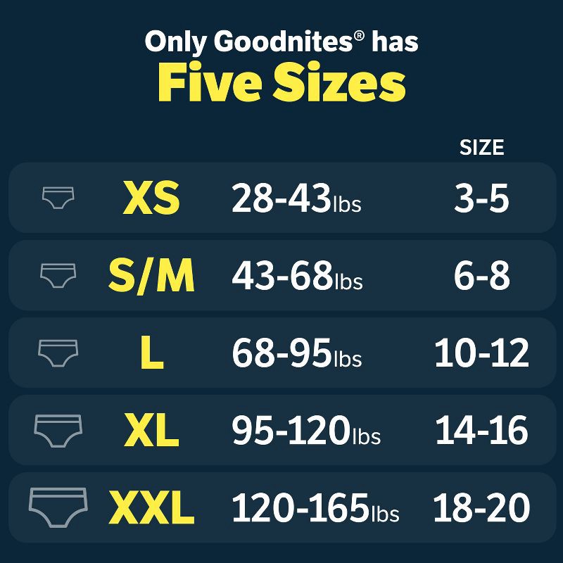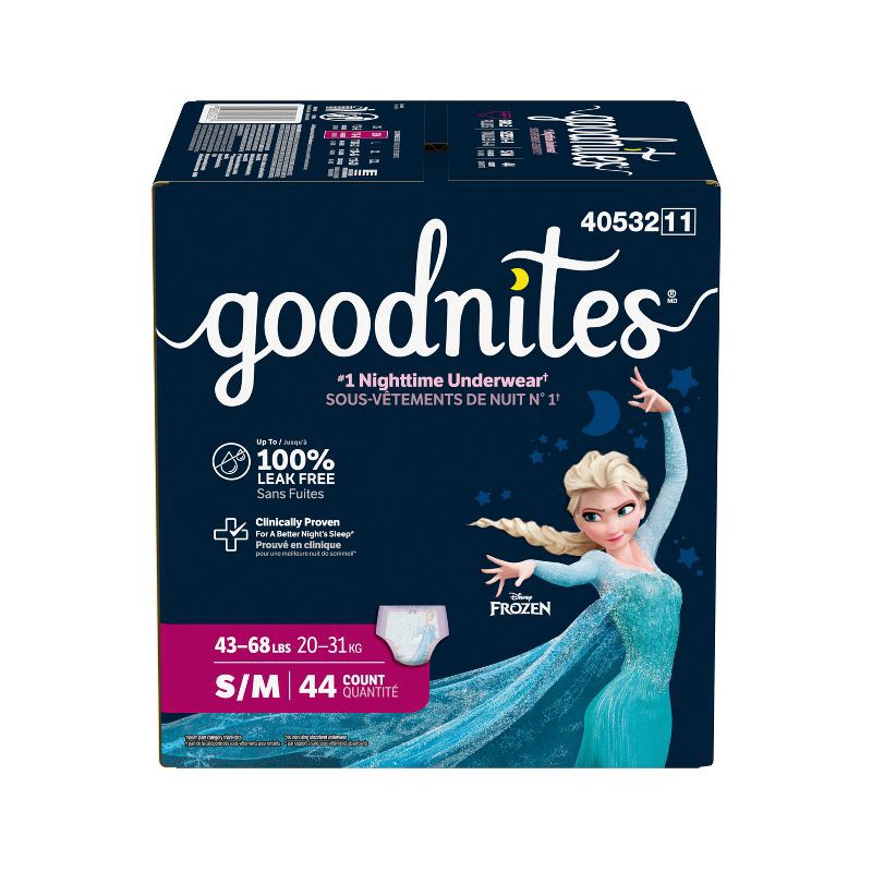 - Goodnites Girls' Bedwetting Underwear: 44 overnight underwear for girls, size S/M (43-68 lbs)
