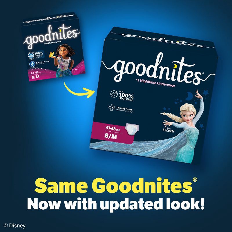 Goodnites Girls' Nighttime Bedwetting Disposable Underwear - Size S/M - 44ct: Hypoallergenic, Leak Guards, Pull-On Design, Disney