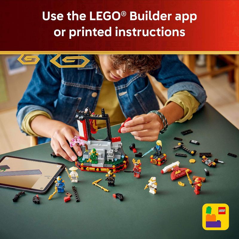 - BUILD THE ICONIC MONASTERY – Builders can construct the monastery to showcase 8 minifigures, featuring steps, an opening gate, a stone lantern, a cherry blossom tree and a tearoom at the back with stickers depicting the famous Wu vs. Garmadon battle from the pilot season