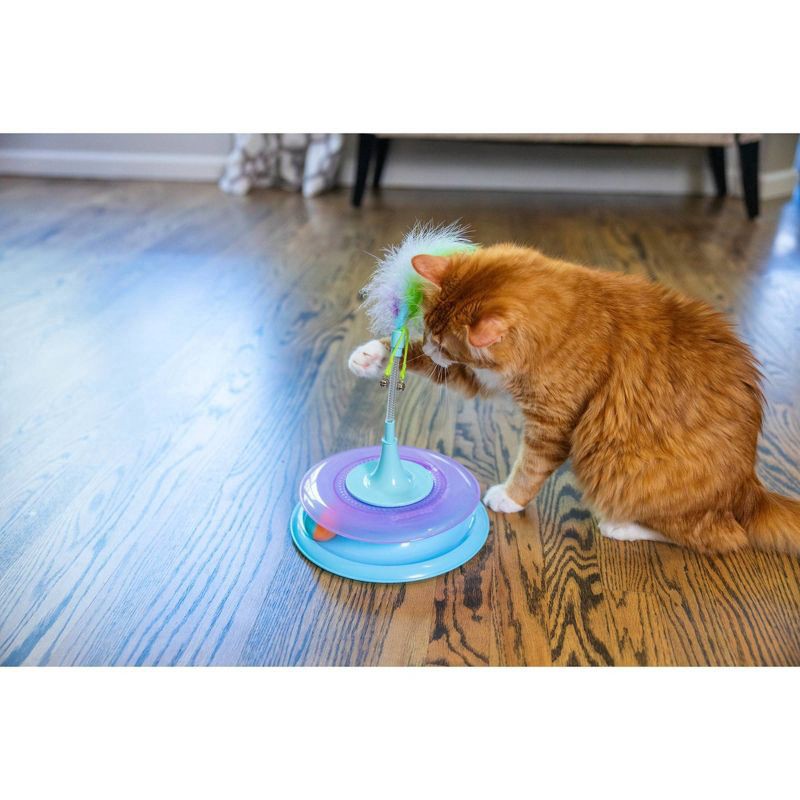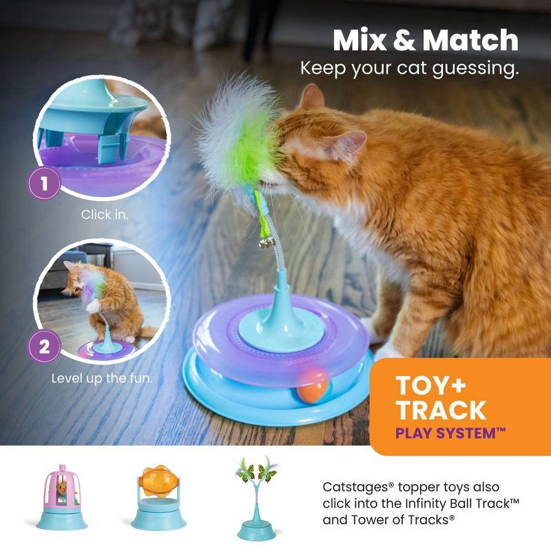 Race N' Chase has three activities for three times the fun! Compatible with all Catstages track toppers, just click N' play. The non-slip base design keeps the toy in one place while your kitty pounce…