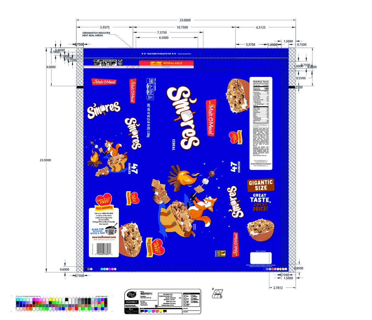 - One 47 oz resealable cereal bag of Malt-O-Meal S'mores Breakfast Cereal