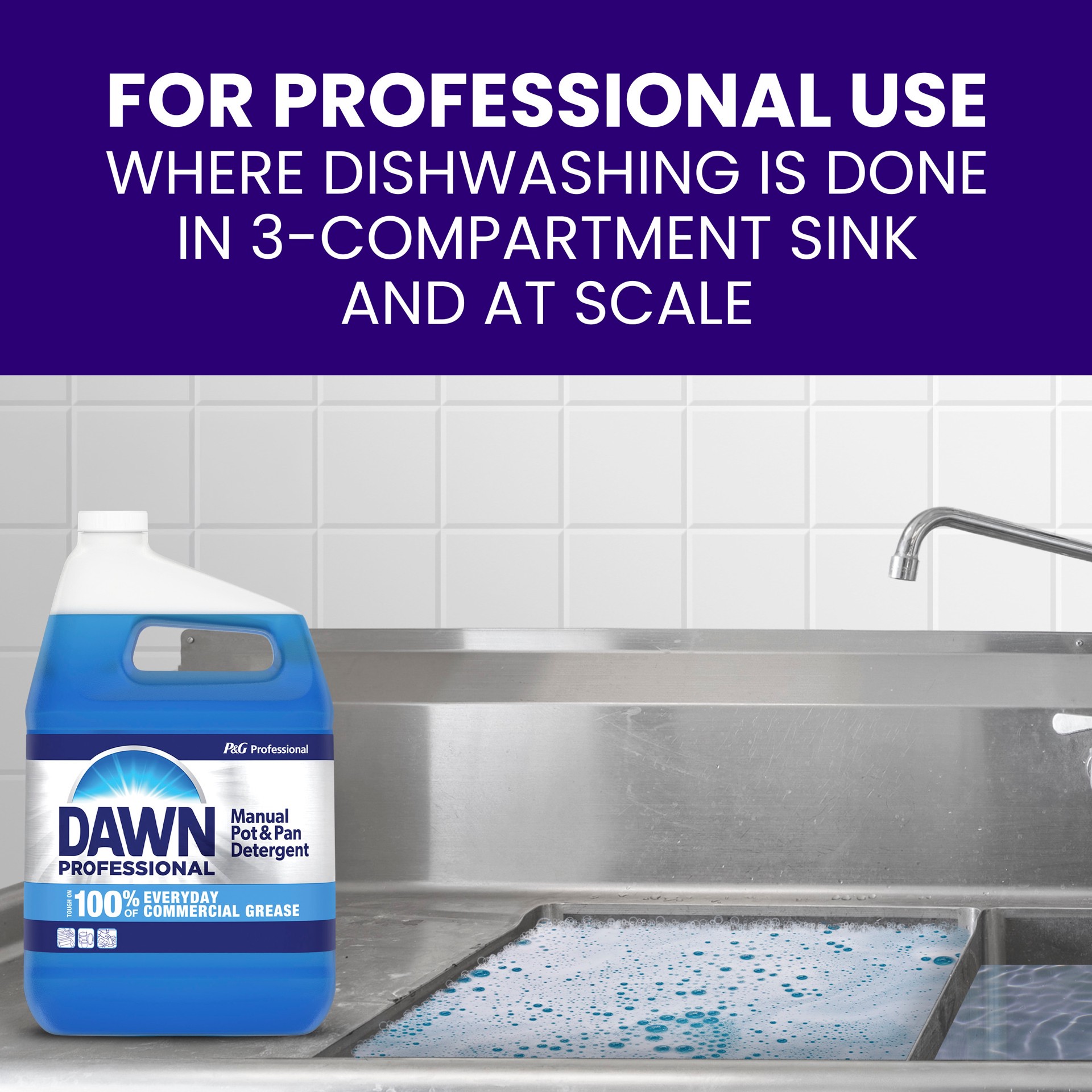 Tough on 100% of Everyday Commercial Grease. Clean 2X the Pots & Pans per sink with 2X Longer Lasting Suds - Saving You Time & Money. Fill up to 512 Sinks per Case and 128 Sinks per Bottle.